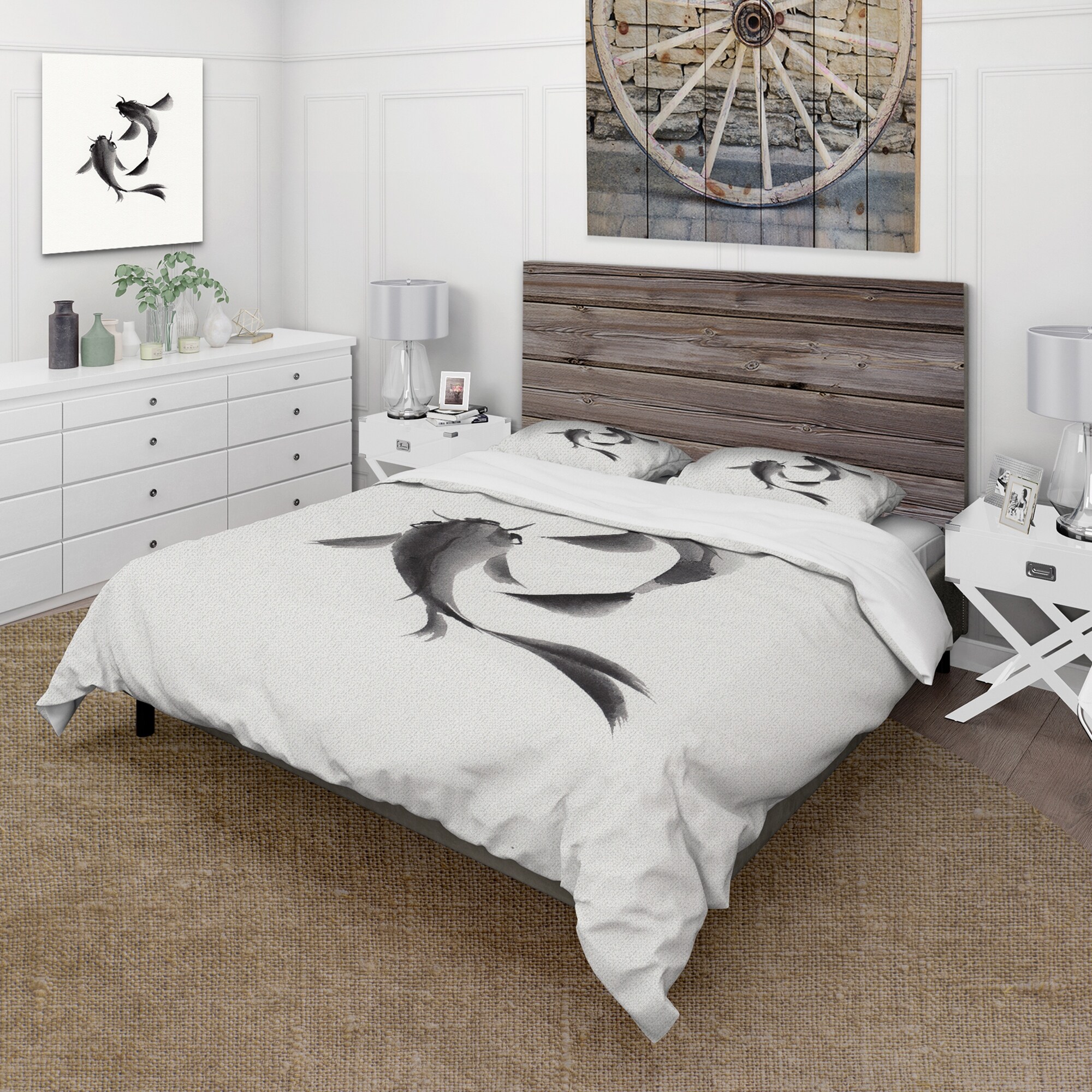 Designart 'Monochrome Vintage Fish II' Nautical & Coastal Duvet Cover Comforter Set