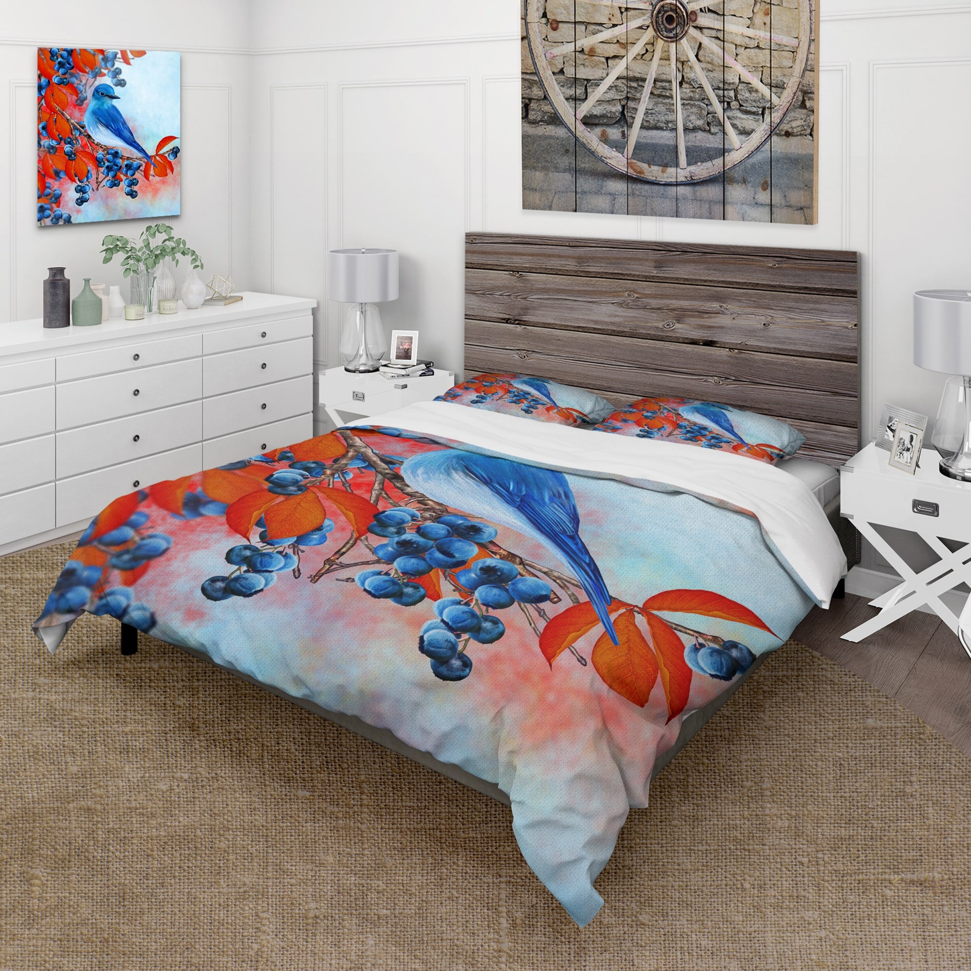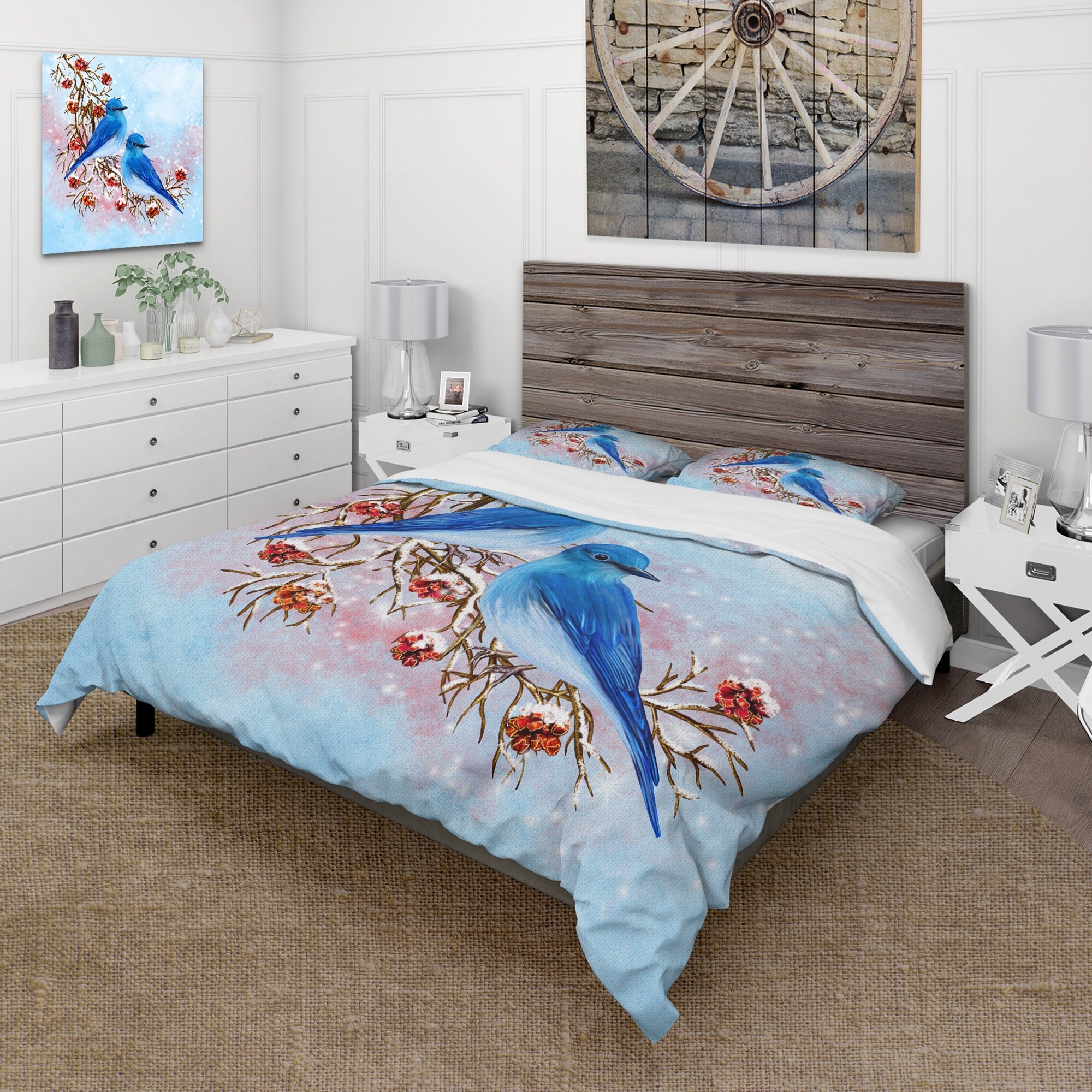 Designart 'Two Blue Birds Sitting on A Branch With Berries' Traditional Duvet Cover Comforter Set