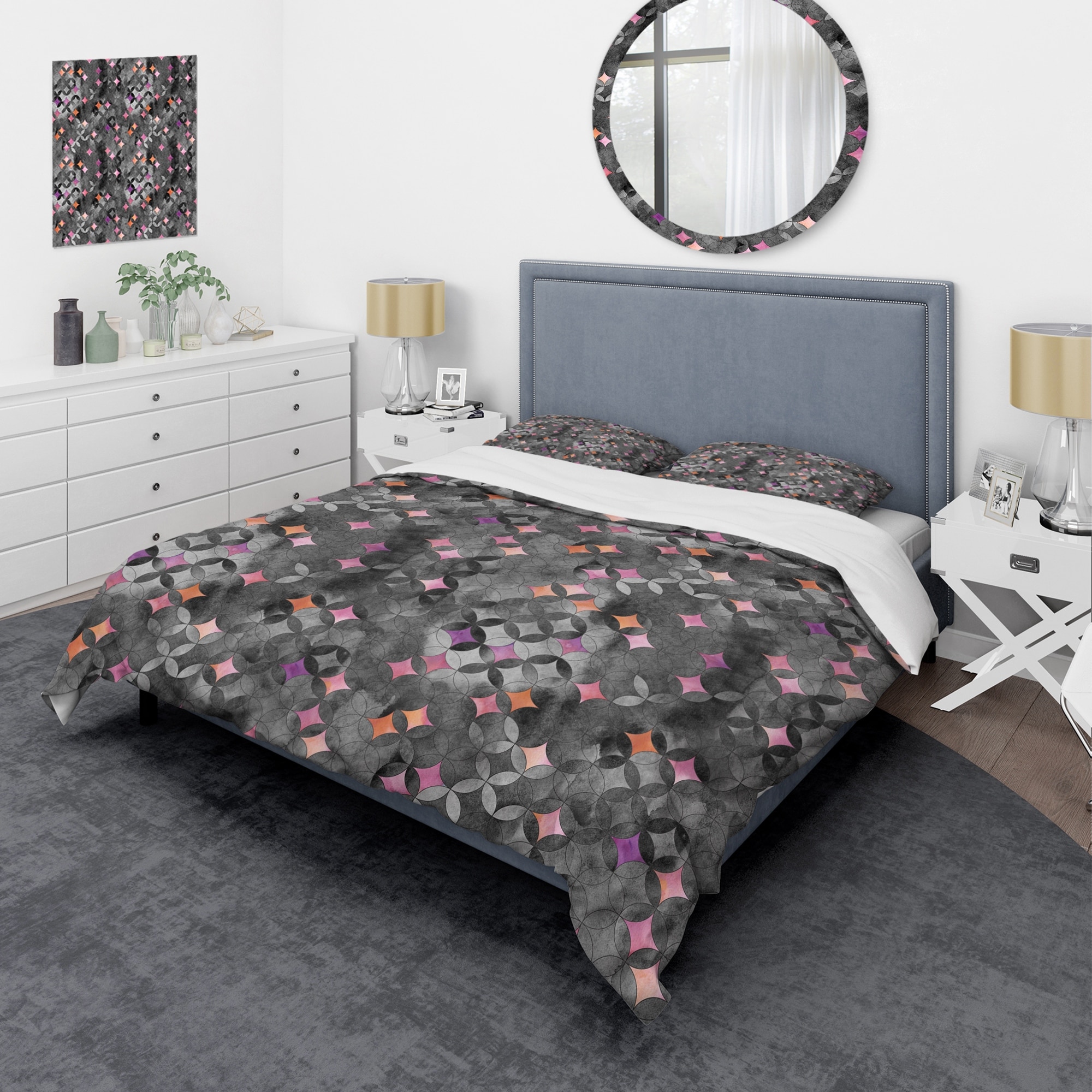 Designart 'Geometry Intersecting Circles With Pink Stars' Modern Duvet Cover Comforter Set