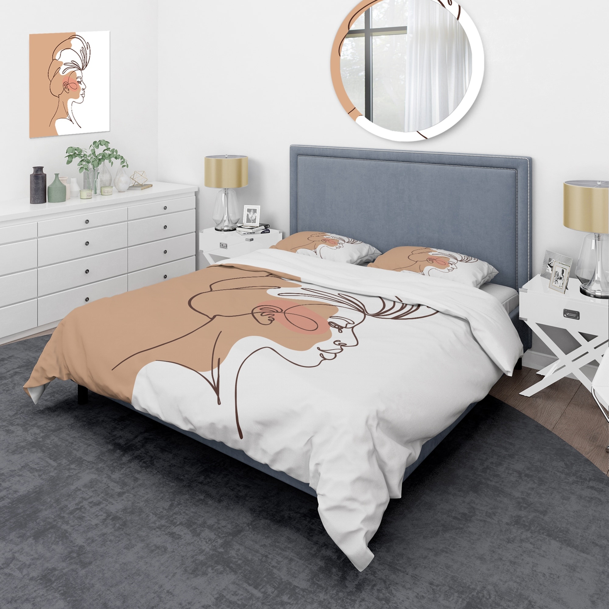Designart 'One Line Portrait of African American Woman II' Modern Duvet Cover Comforter Set