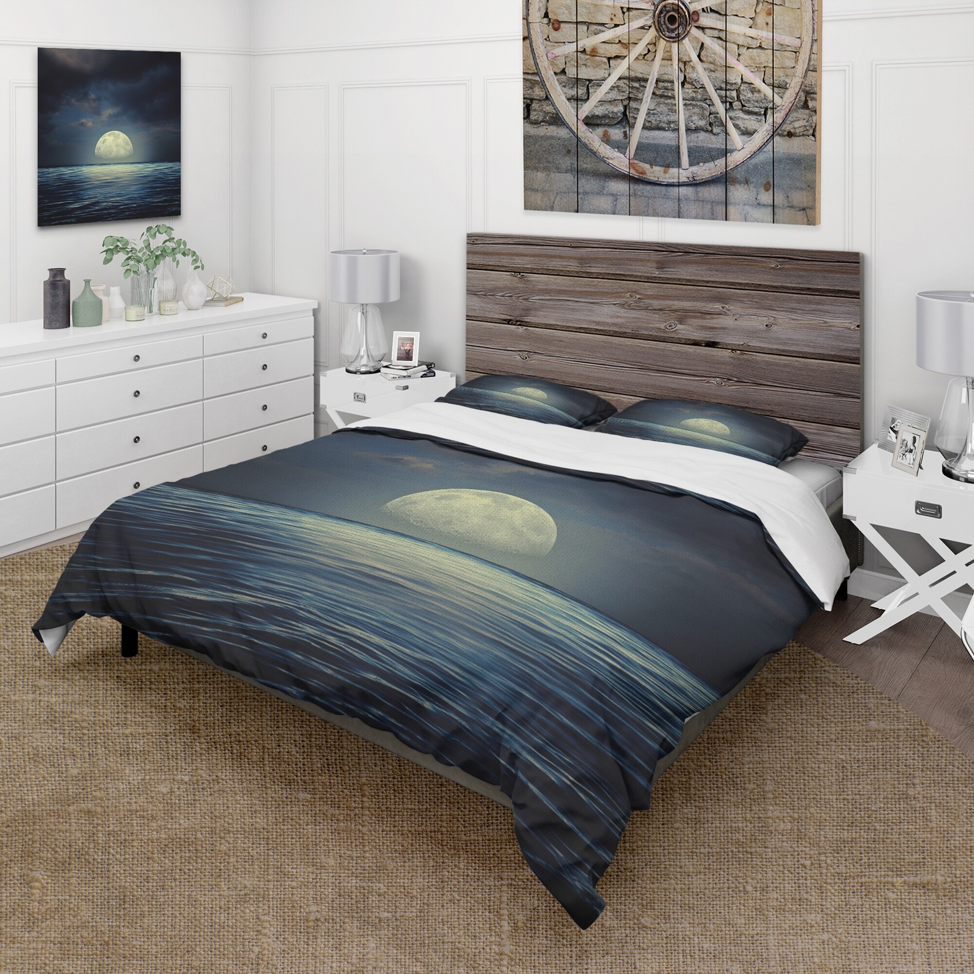 Designart 'Super Moon Over the Sea II' Nautical & Coastal Duvet Cover Comforter Set