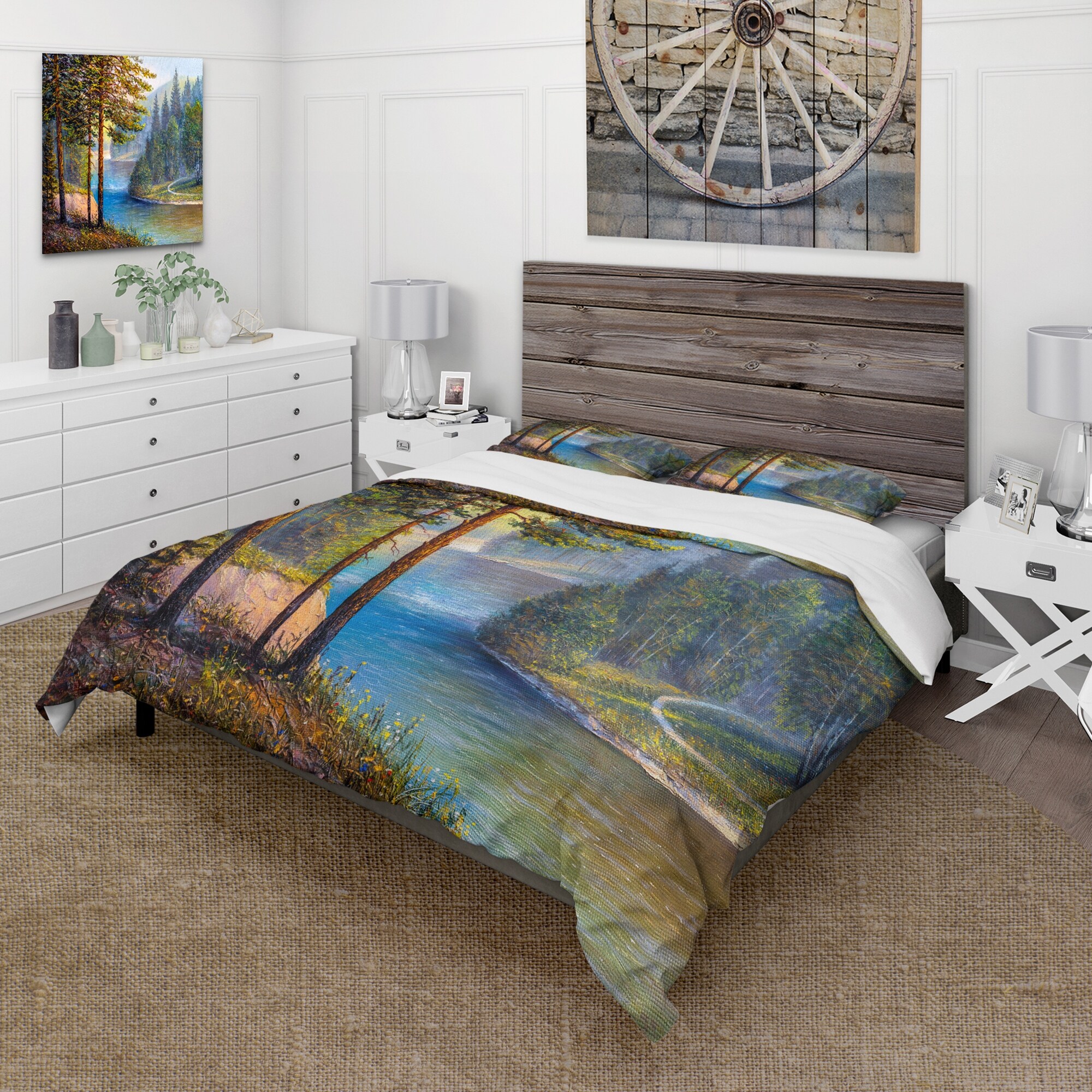 Designart 'Morning Sunlight Through the Pine & Fir Forest' Lake House Duvet Cover Comforter Set