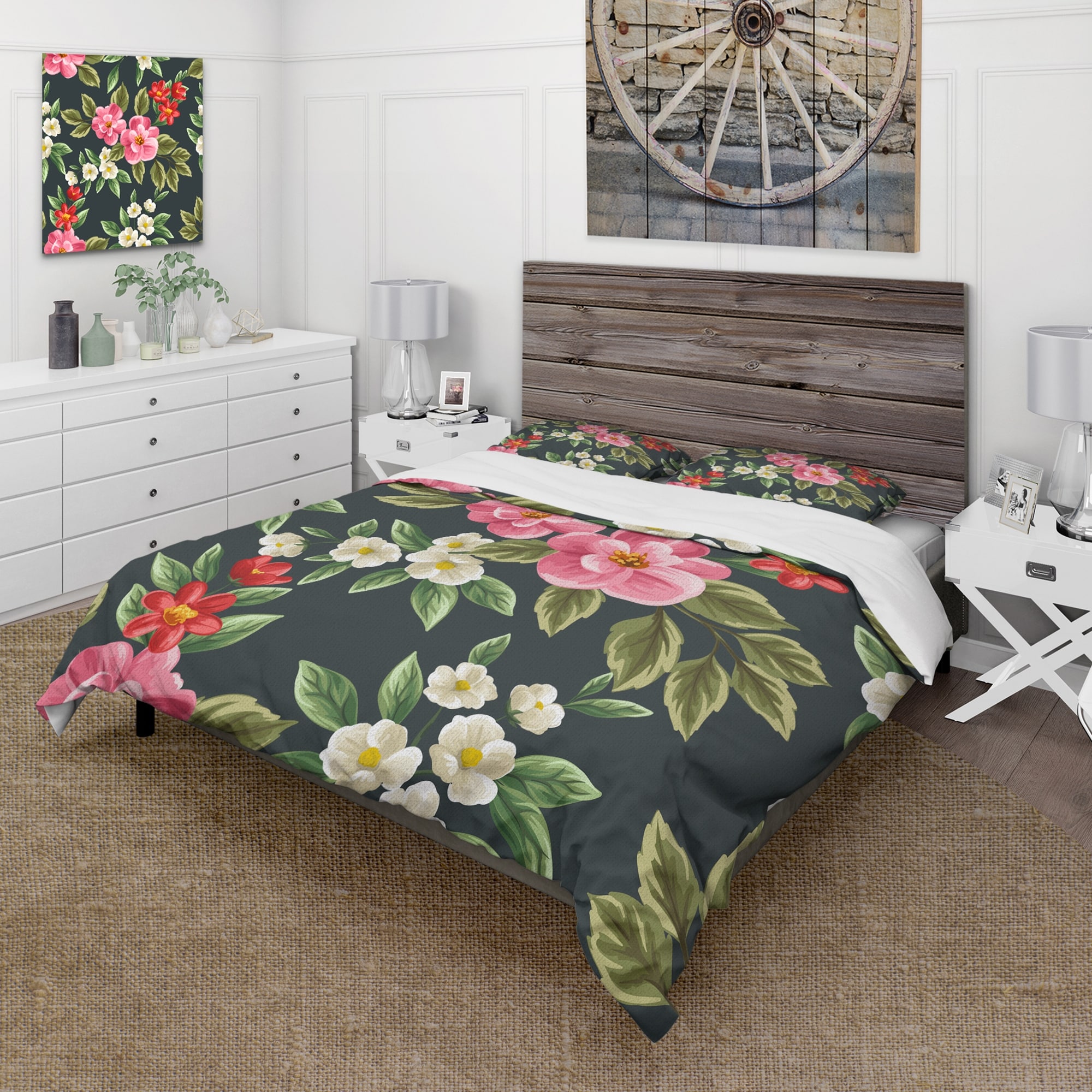 Designart 'Vintage Pink and Red Wildflowers II' Traditional Duvet Cover Comforter Set