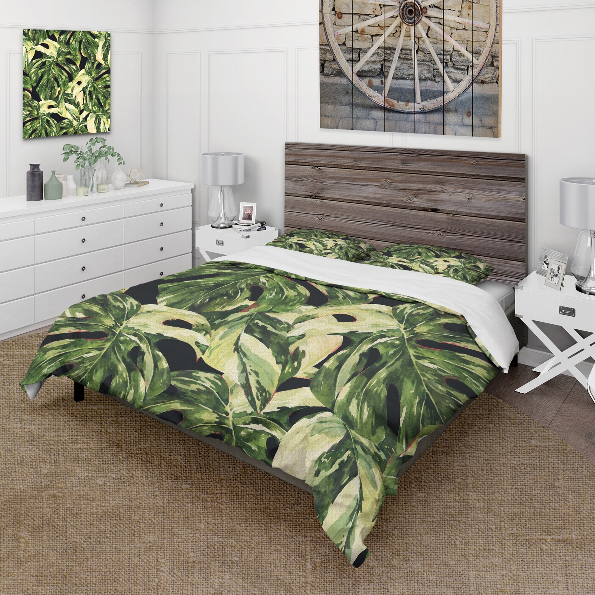 Designart 'Natural Leaves Exotic on Dark II' Tropical Duvet Cover Comforter Set