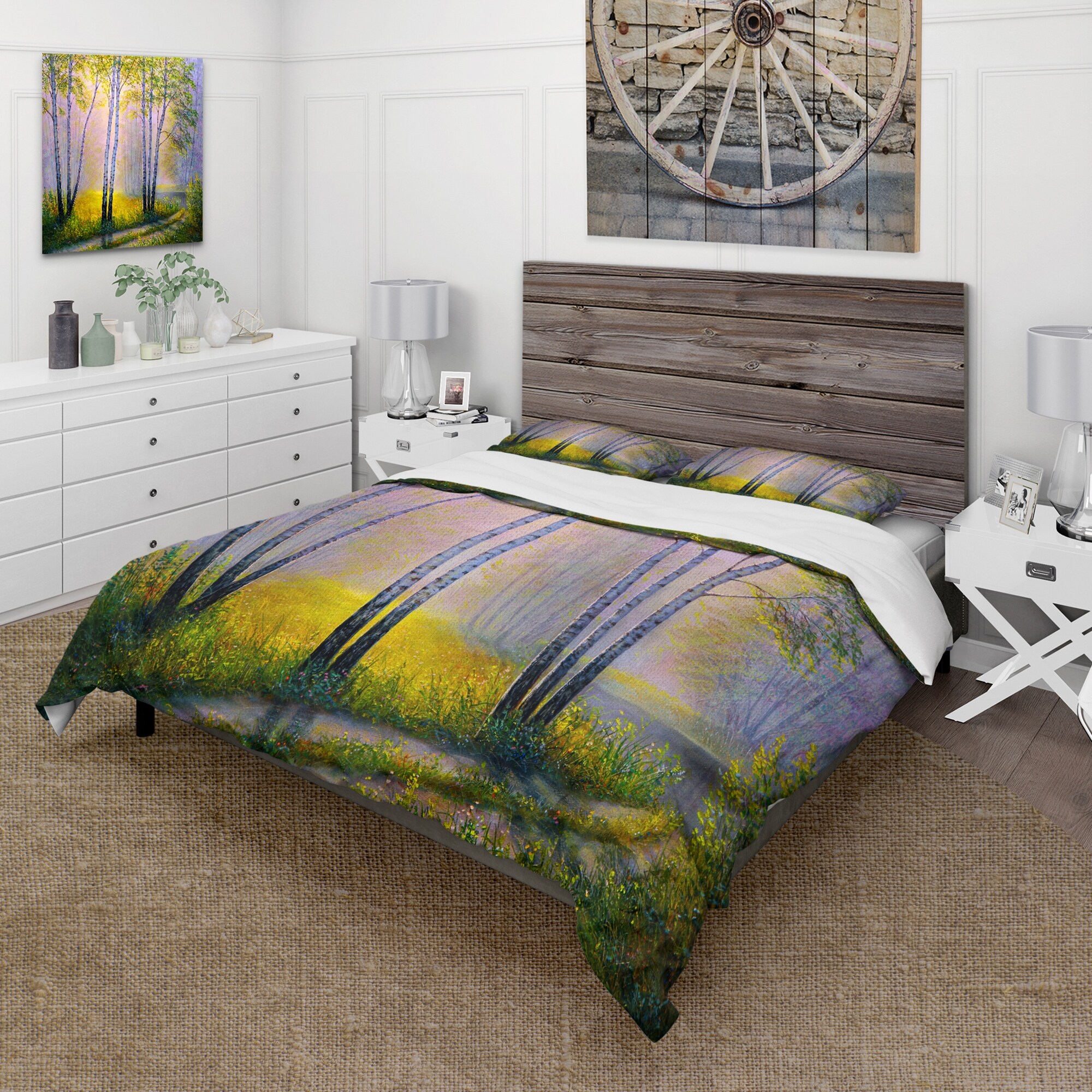 Designart 'Morning Sunlight Through the Birches I' Traditional Duvet Cover Comforter Set