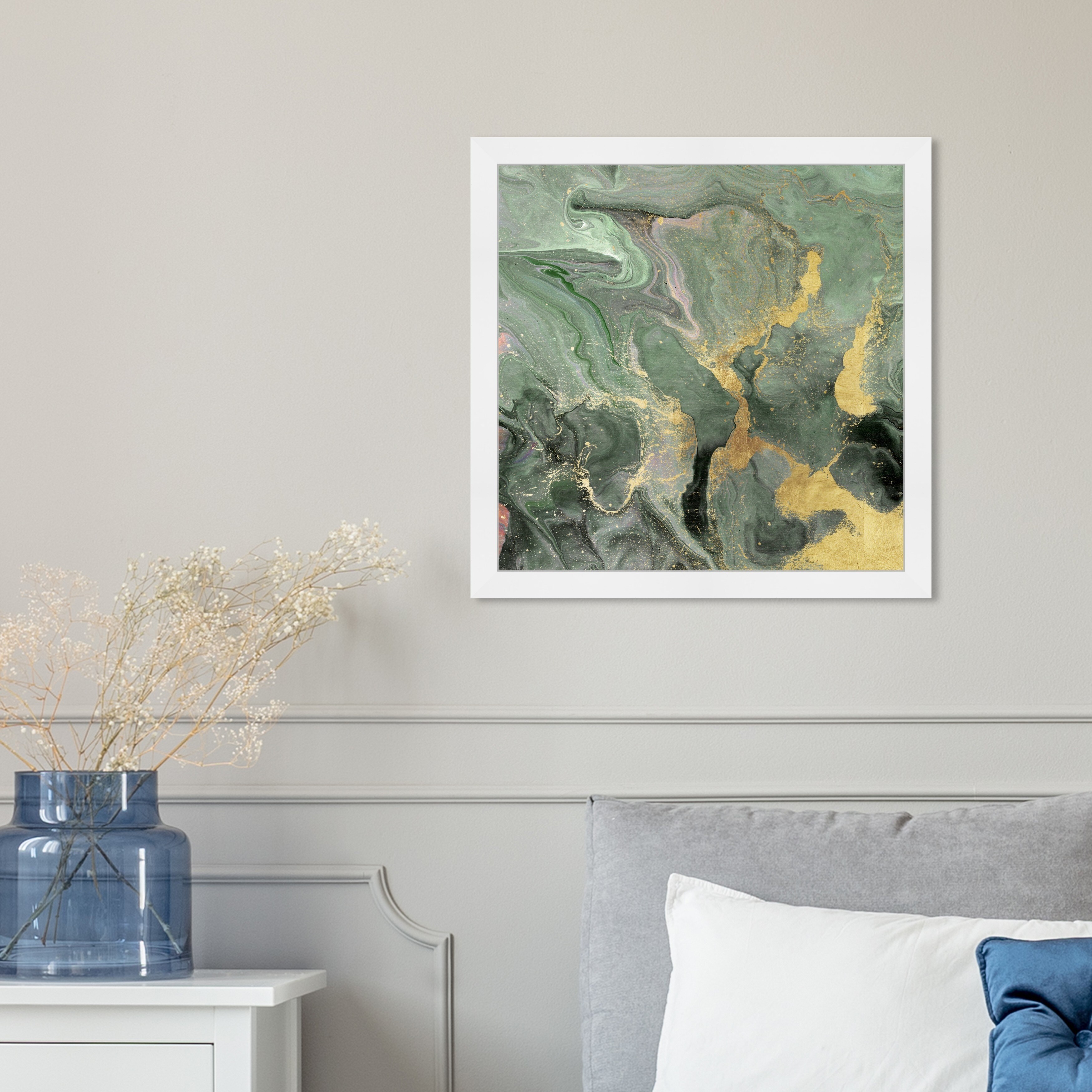 Oliver Gal 'Jade Cosmos' Abstract Wall Art Framed Print Crystals - Green, Gold
