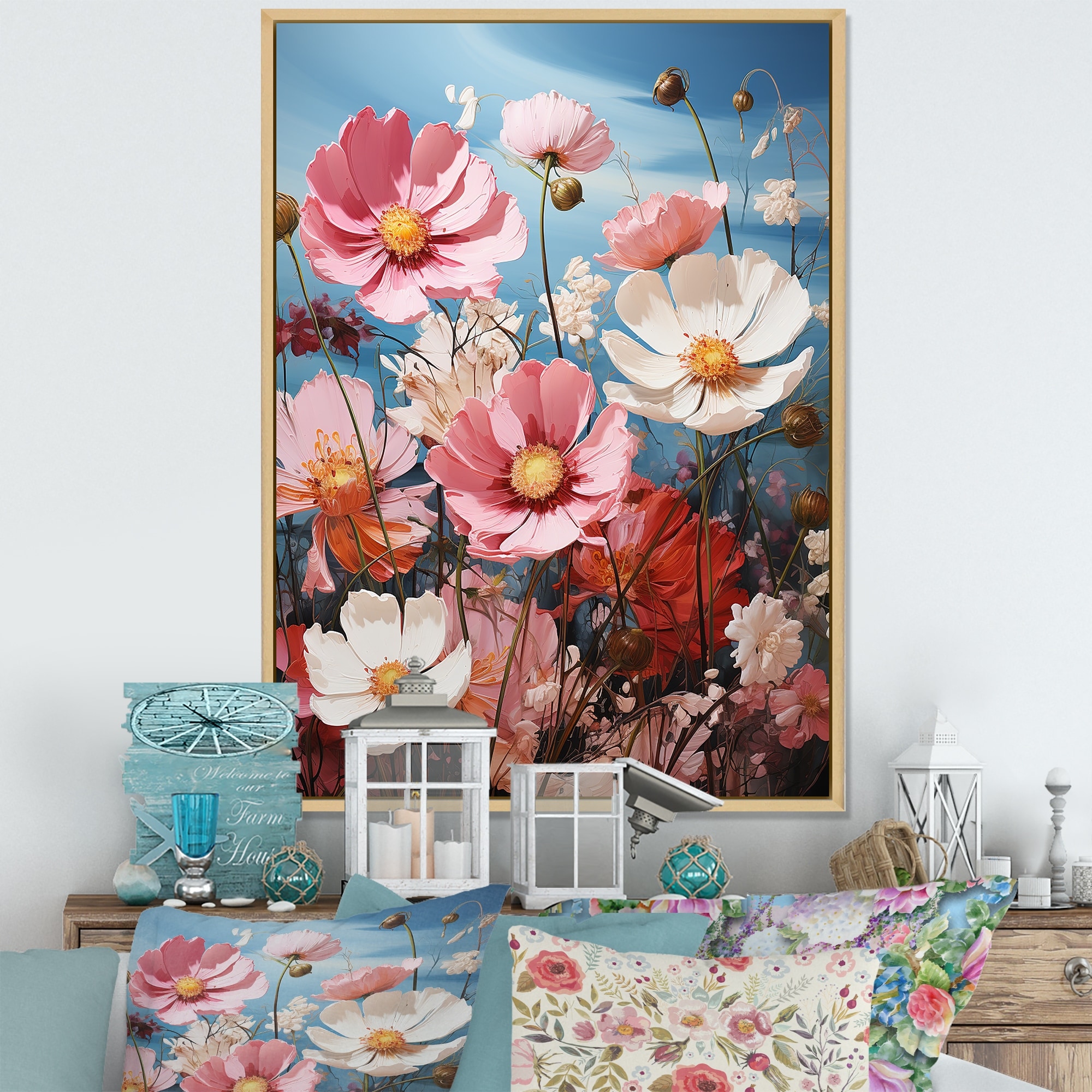 Designart "Cosmos Flowers on Pink Background" Floral Canvas Art Print