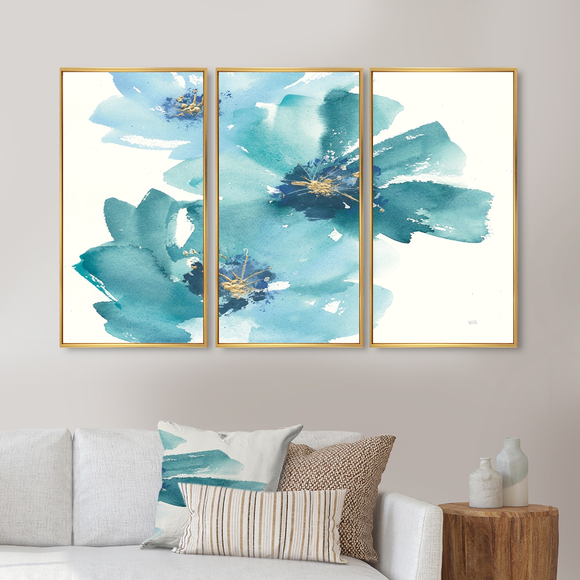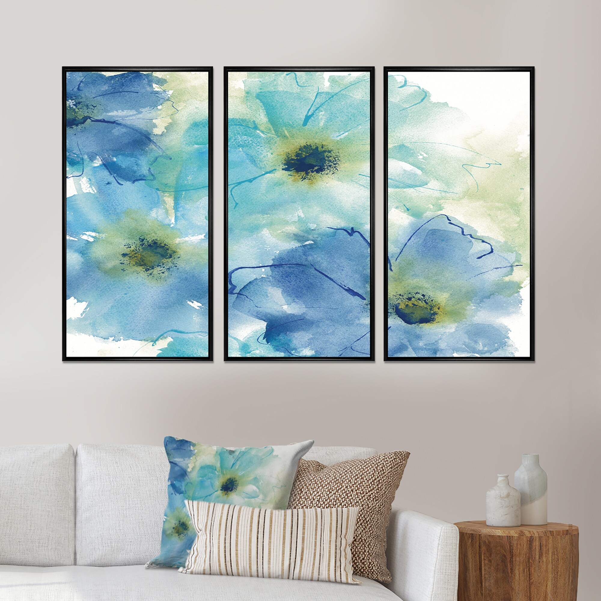 Designart "Blue Cosmos Indigo I" Farmhouse Framed Canvas Wall Art Print Set of 3 - 4 Colors of Frames