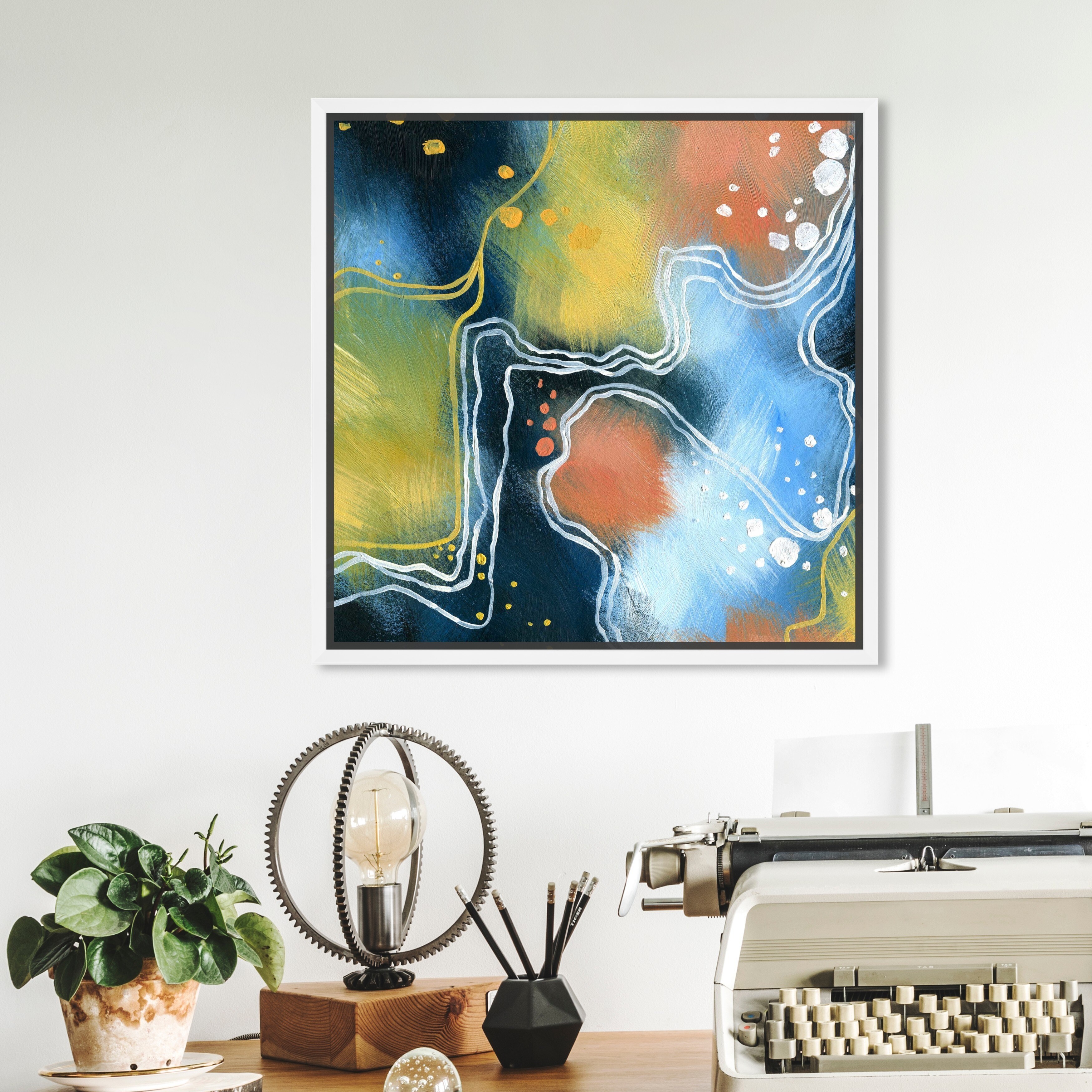 Oliver Gal 'In The Cosmos' Abstract Wall Art Framed Canvas Print Watercolor - Yellow, Blue