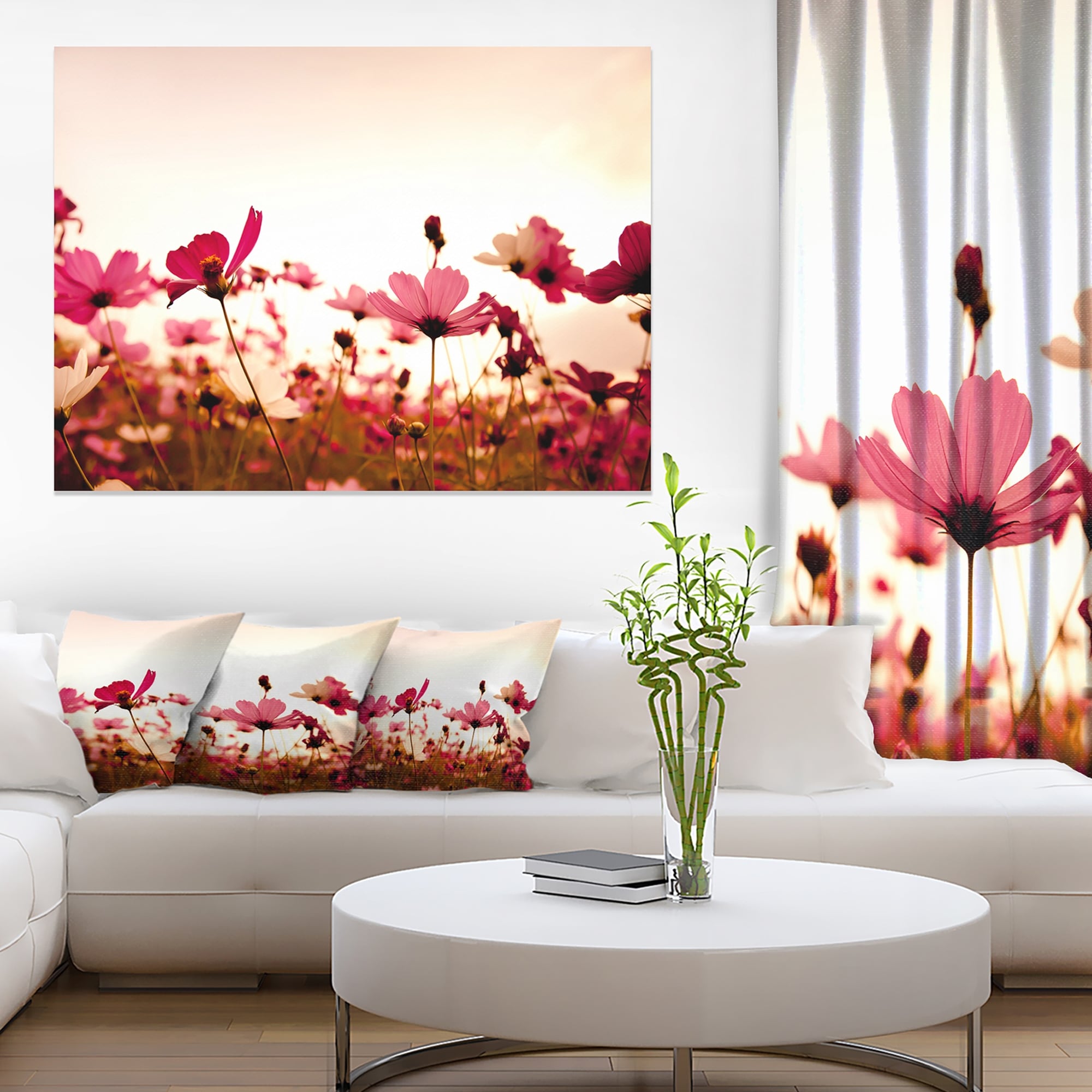 Designart "Cosmos Flowers on Sunset Background" Modern Floral Artwork Print on Canvas - Pink