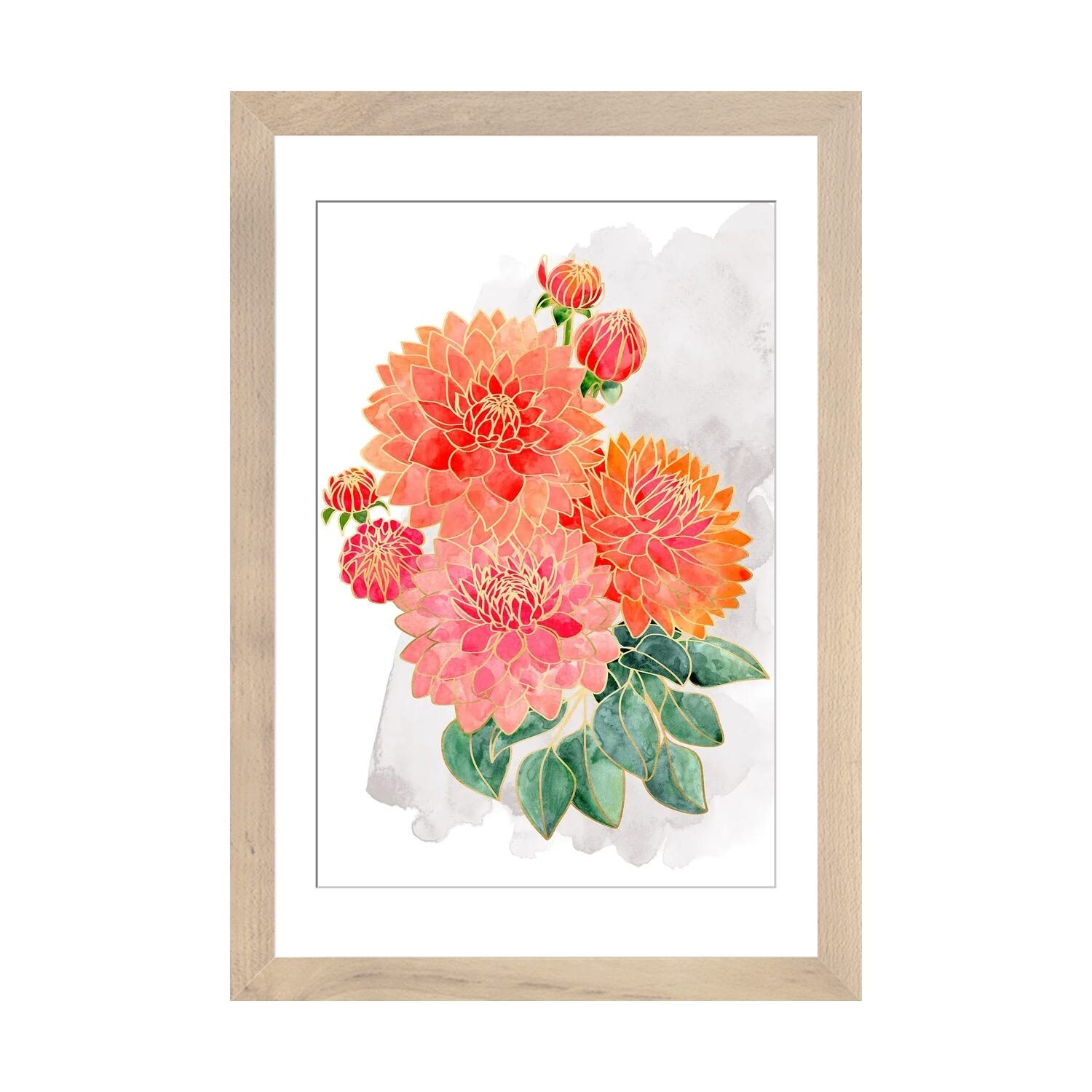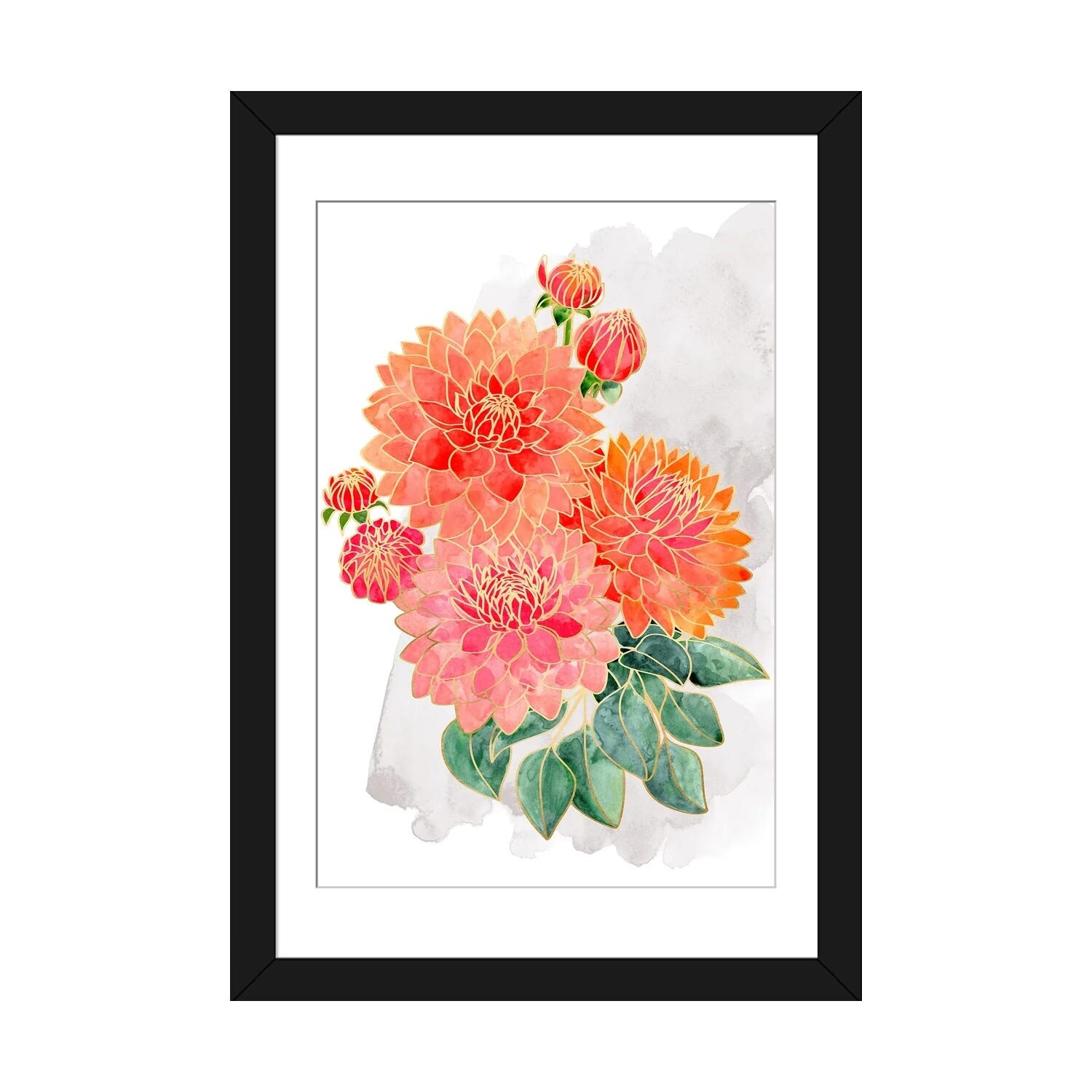 iCanvas "Pacey Dahlias Bouquet in Coral Watercolor" by blursbyai