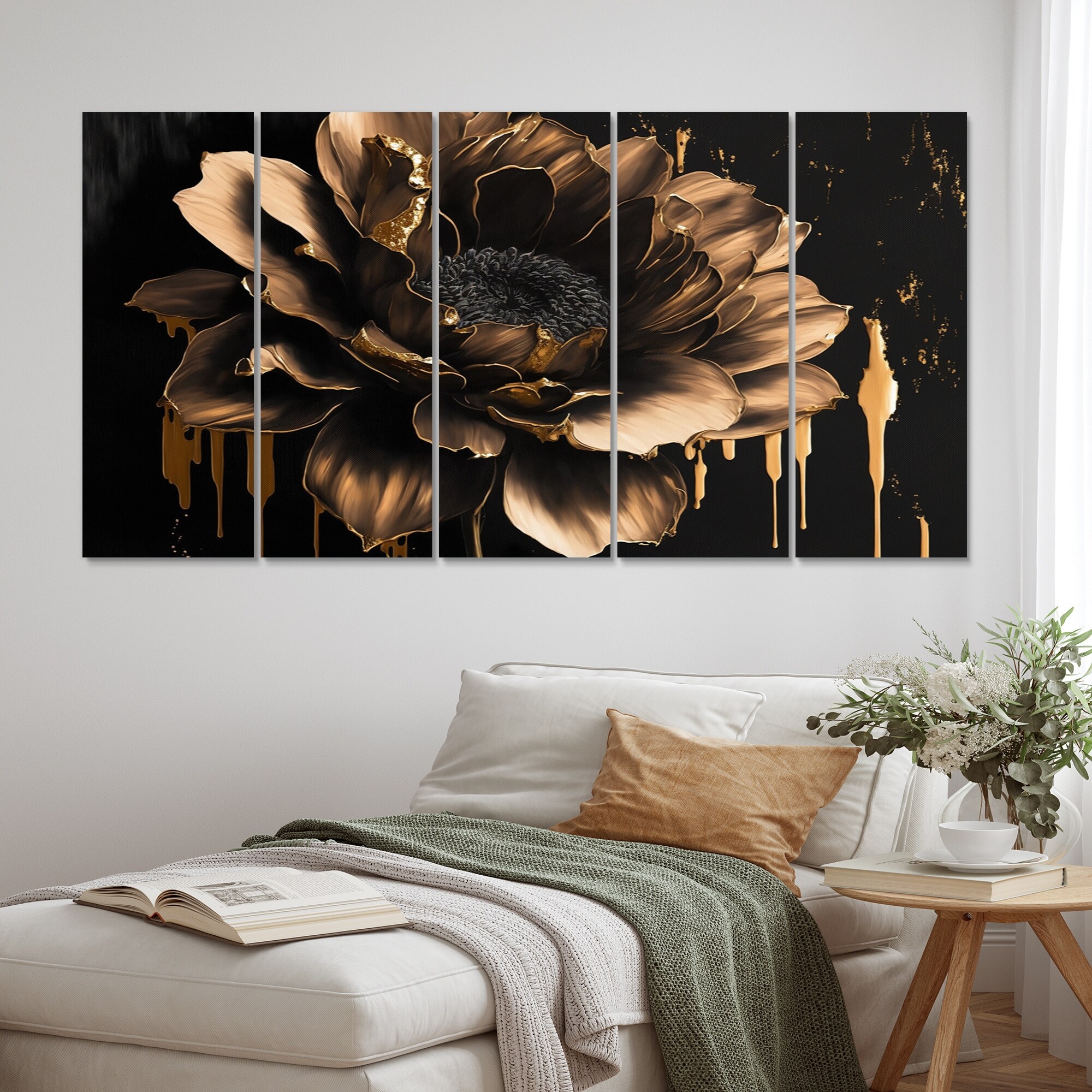 Designart "Black And Gold Dahlia" Floral Dahlia Multipanel Wall Decor