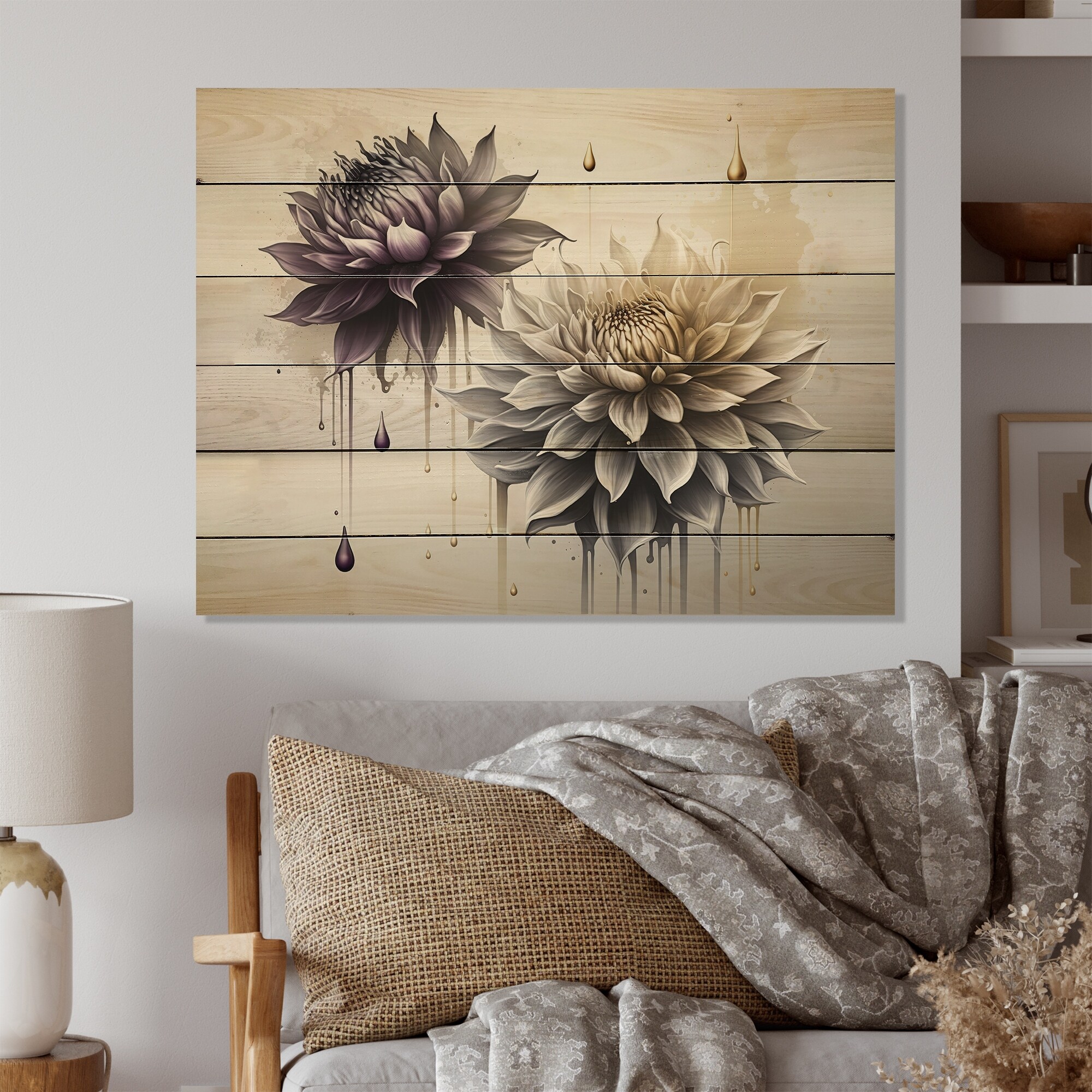 Designart 'Dahlia Flower III' Floral Dahlia Wood Wall Art - Natural Pine Wood
