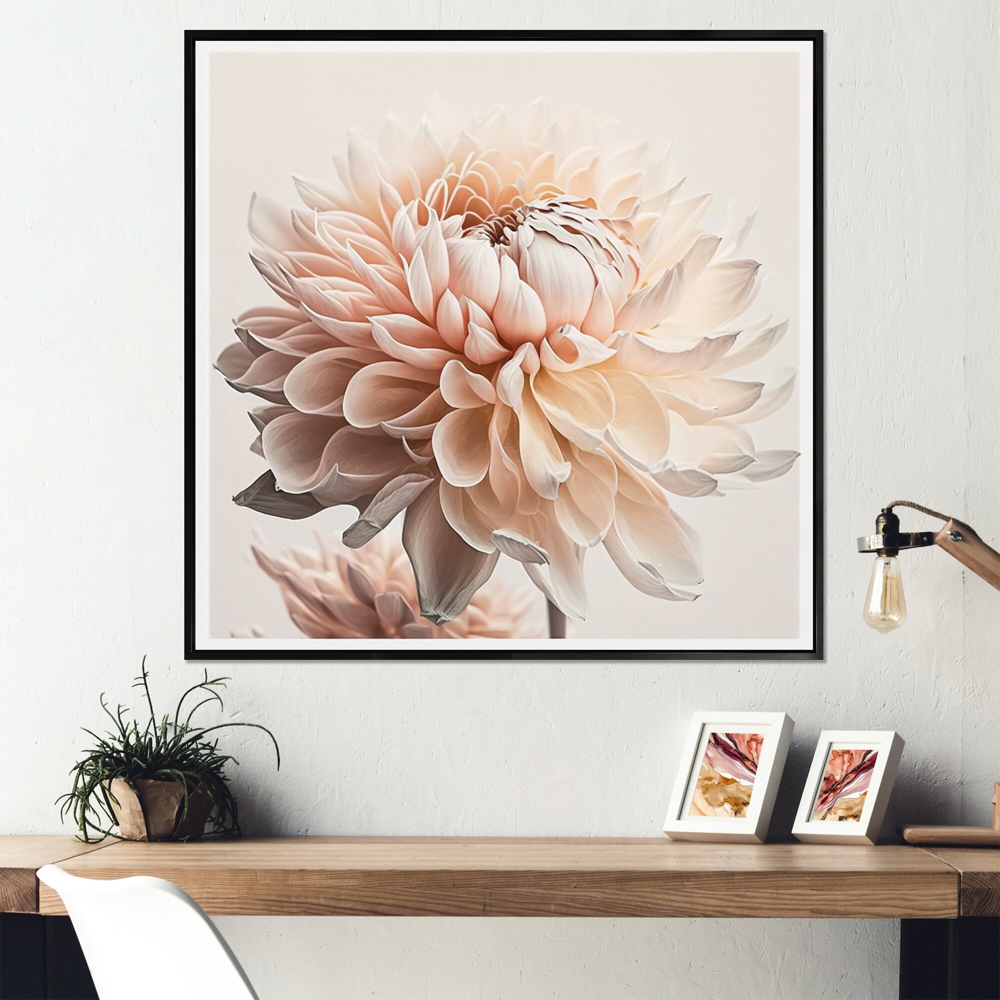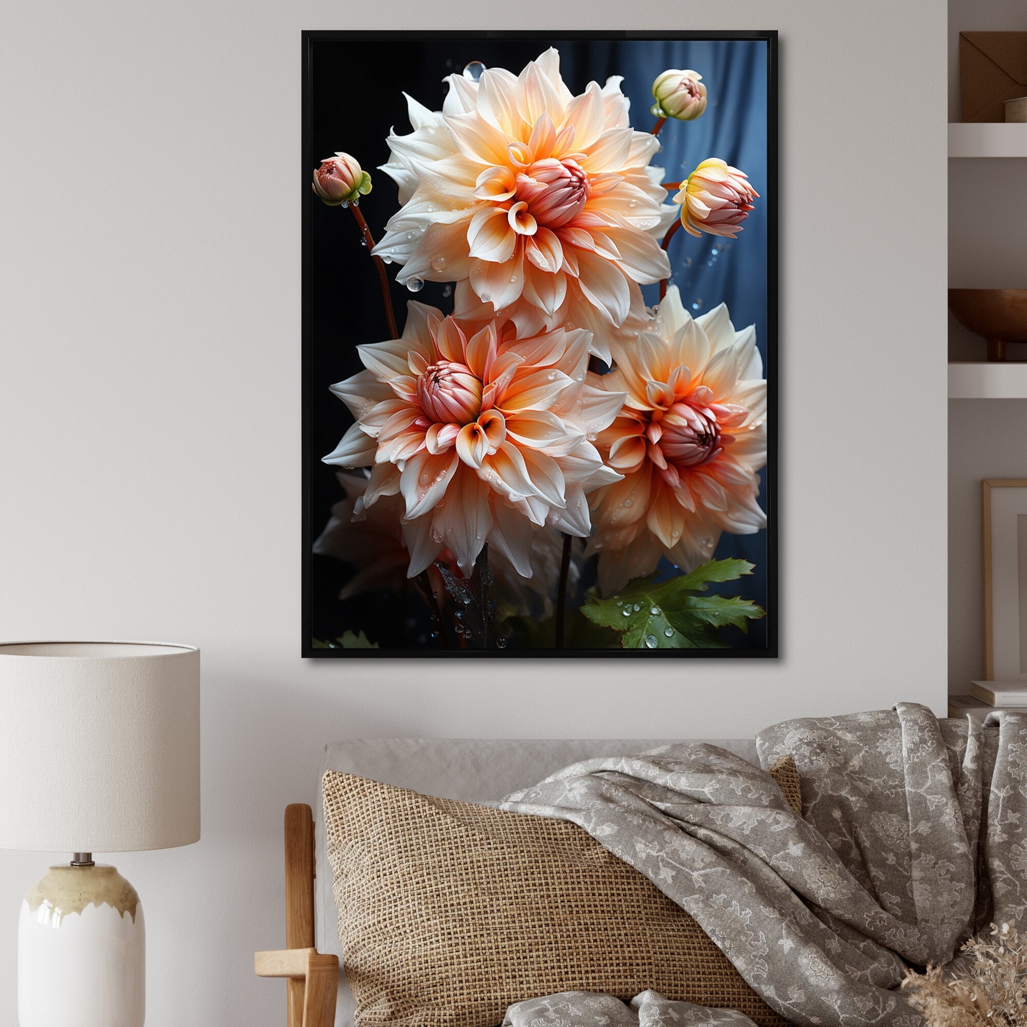 Designart "Peach Dahlia Romantic Impression" Dahlia Framed Wall Art Prints