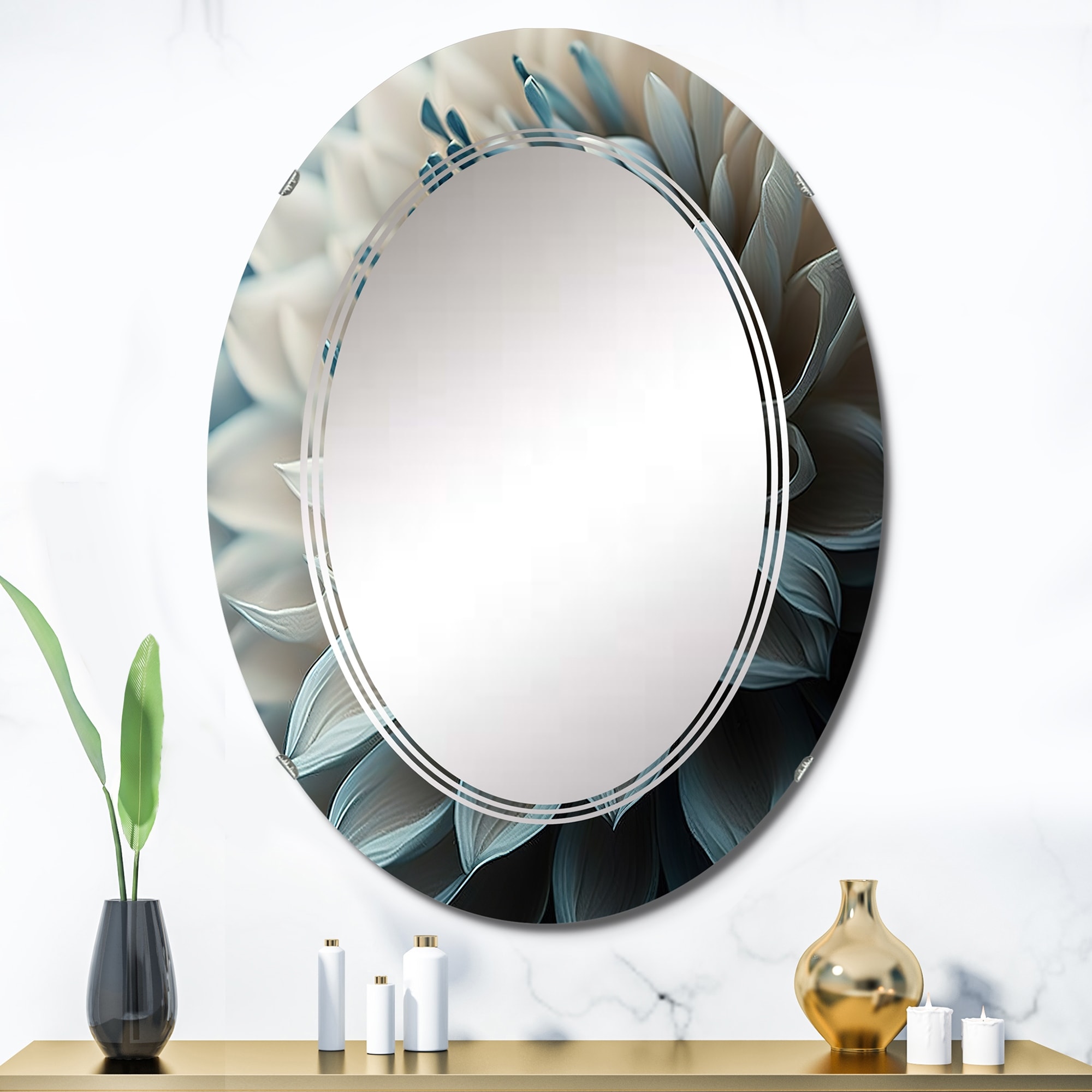 Designart 'Blue And White Dahlia Flowers II' Printed Floral Dahlia Wall Mirror