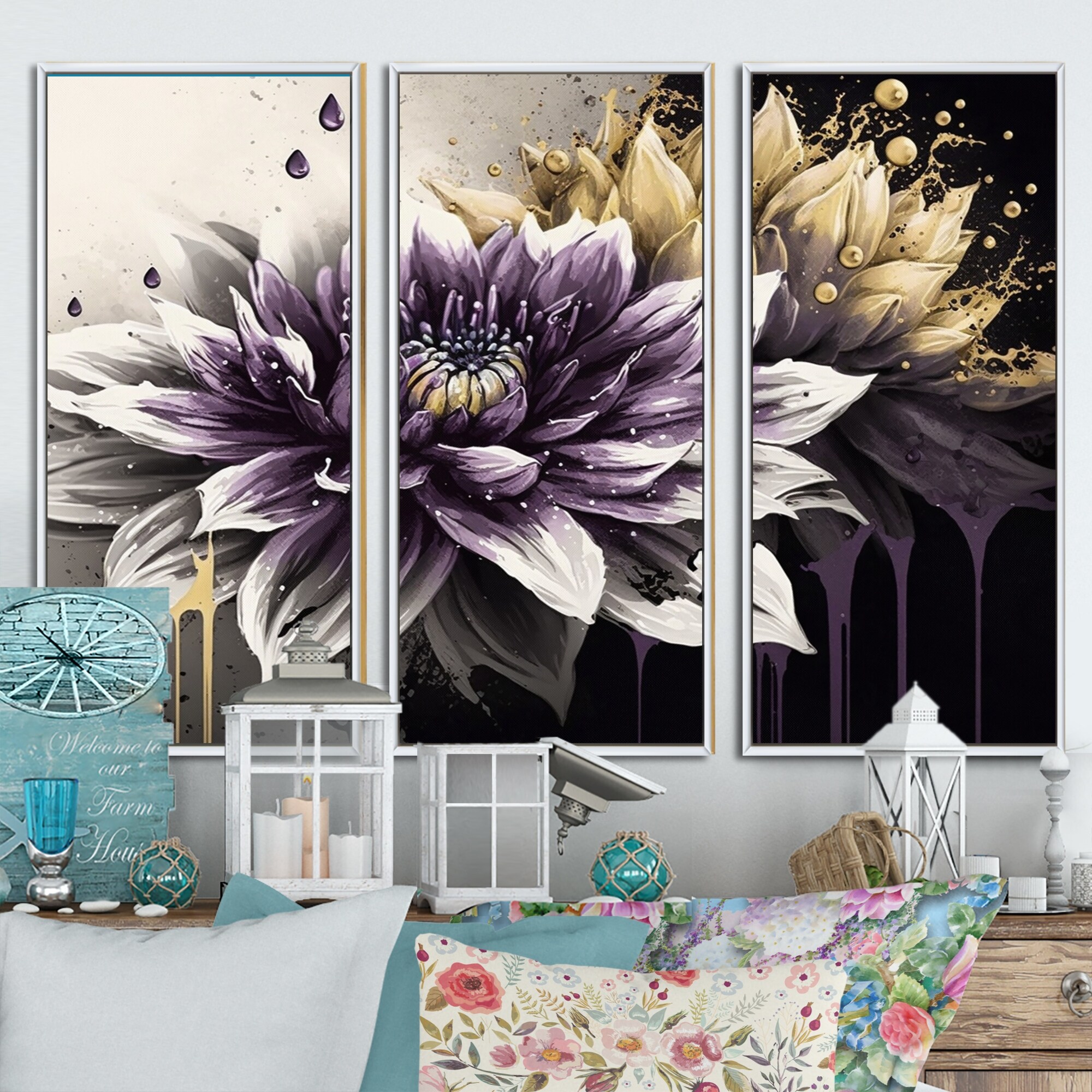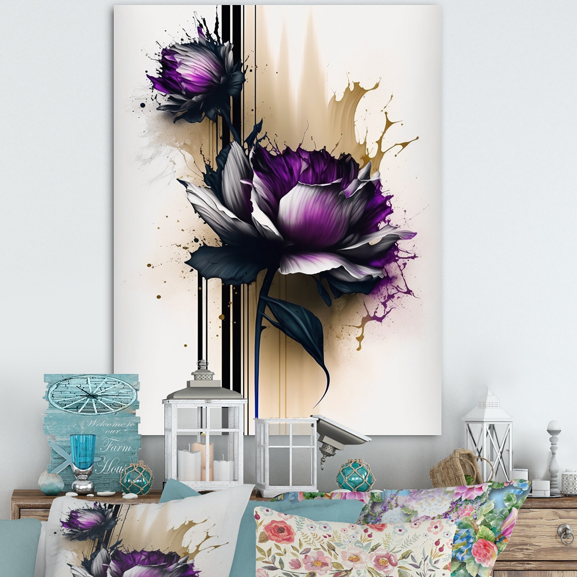 Designart "Purple Dahlia" Cottage Framed Canvas Wall Art