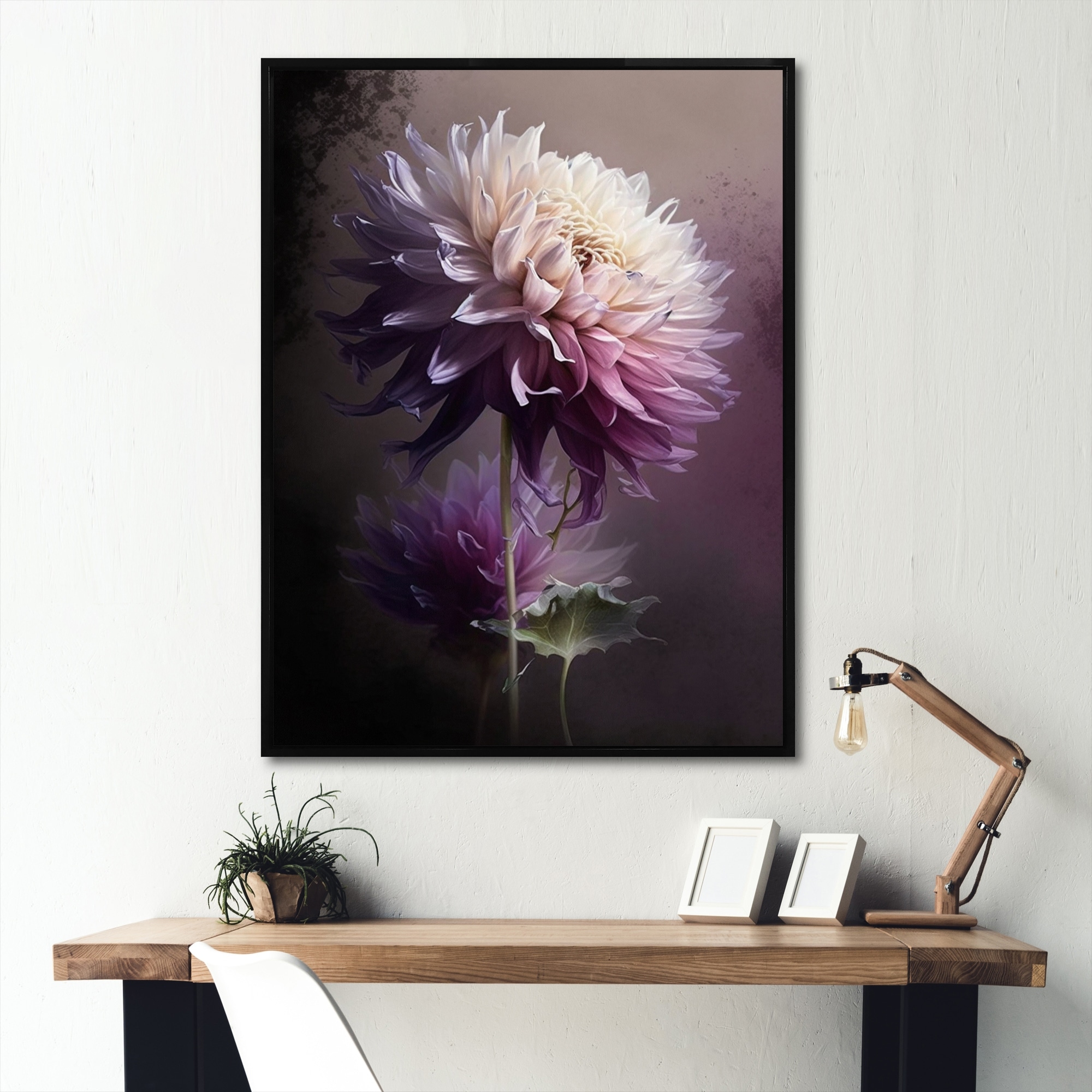 Designart "Hyperrealistic Dahlia Flowers V" Floral Dahlia Framed Canvas Art Print