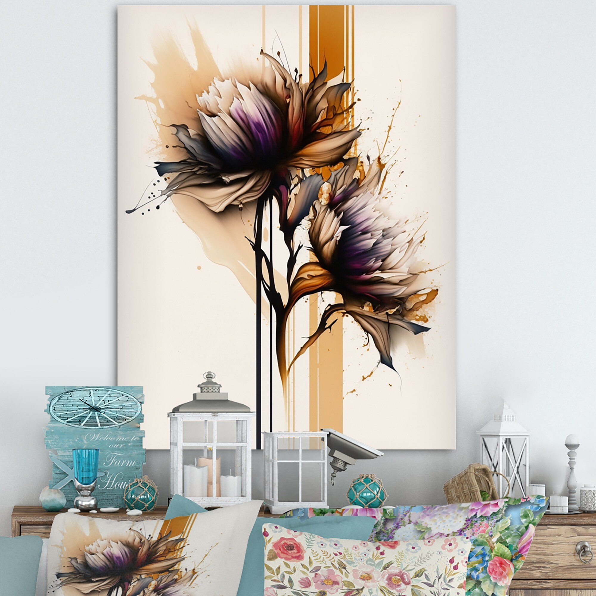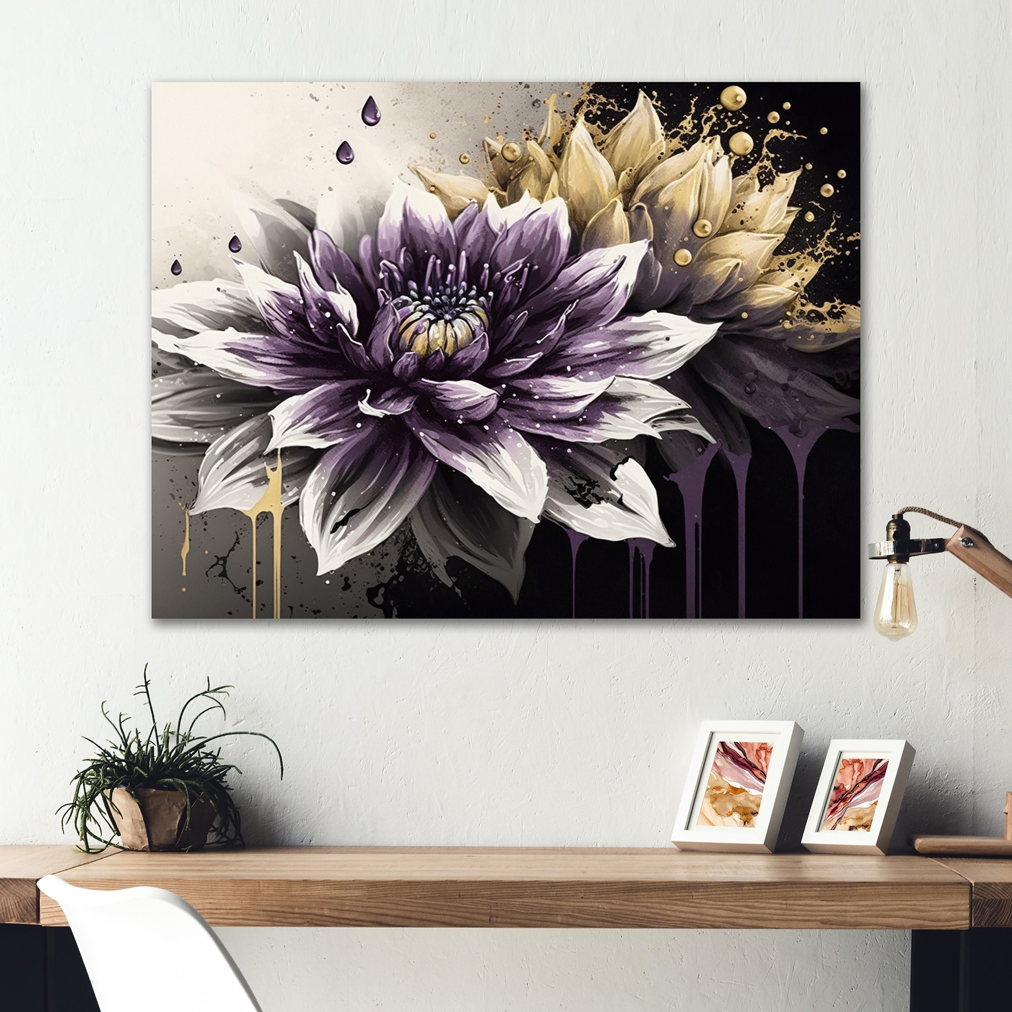 Designart "Purple Dahlia Flower on Abstract Paint II" Floral & Botanical Framed Art Print