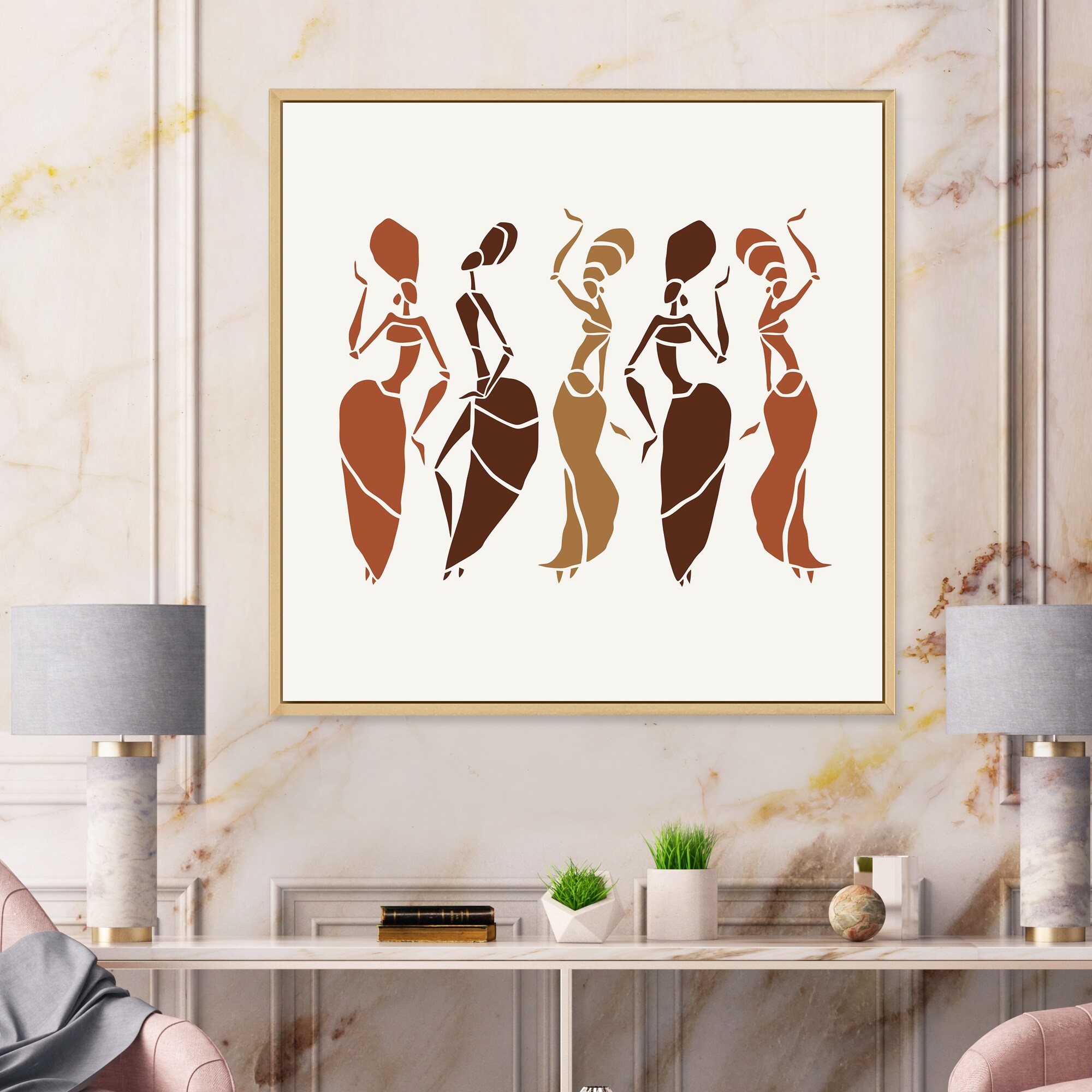 Designart "Abstract Brown Dancers" Glam Framed Canvas Wall Art Print