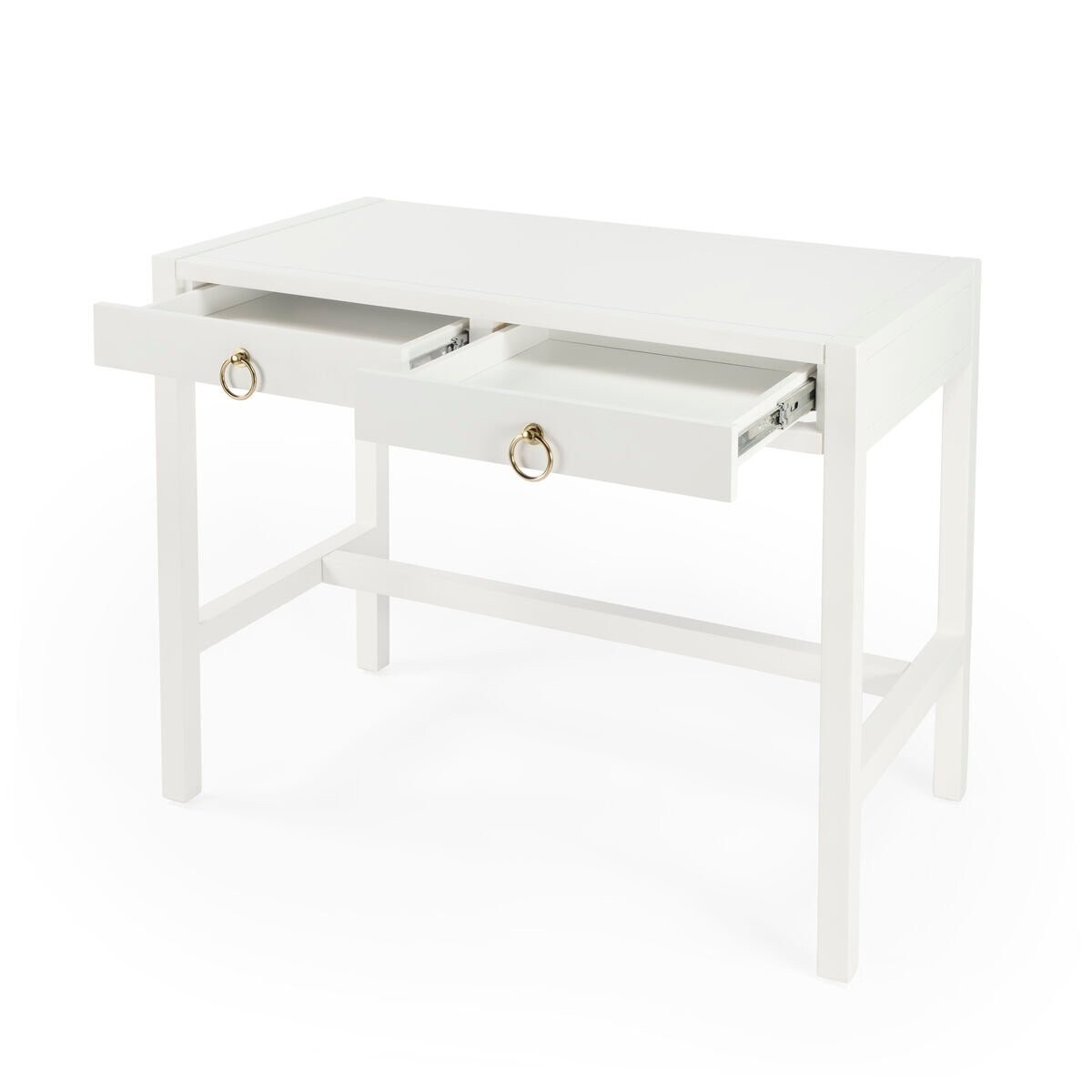 Offex Lark White Rectangular Desk with 2 Drawers and Ring Pulls