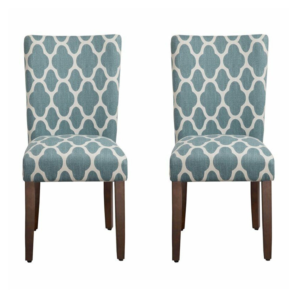 Set of 2 38" Traditional Fabric Dining Chairs Teal Blue - 19x38