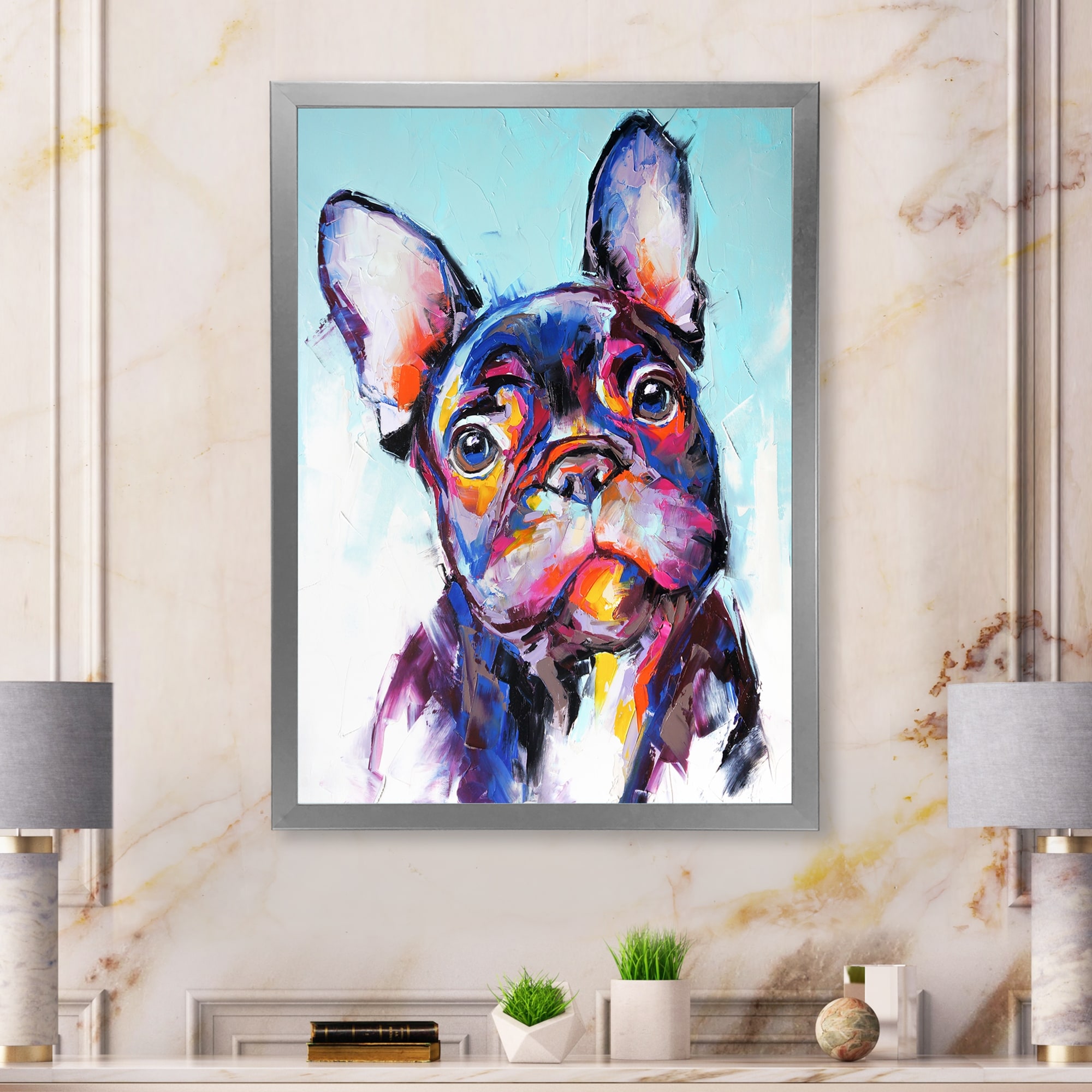 Designart "Brushstroke Pop Art Dog Portrait" Modern Framed Wall Art