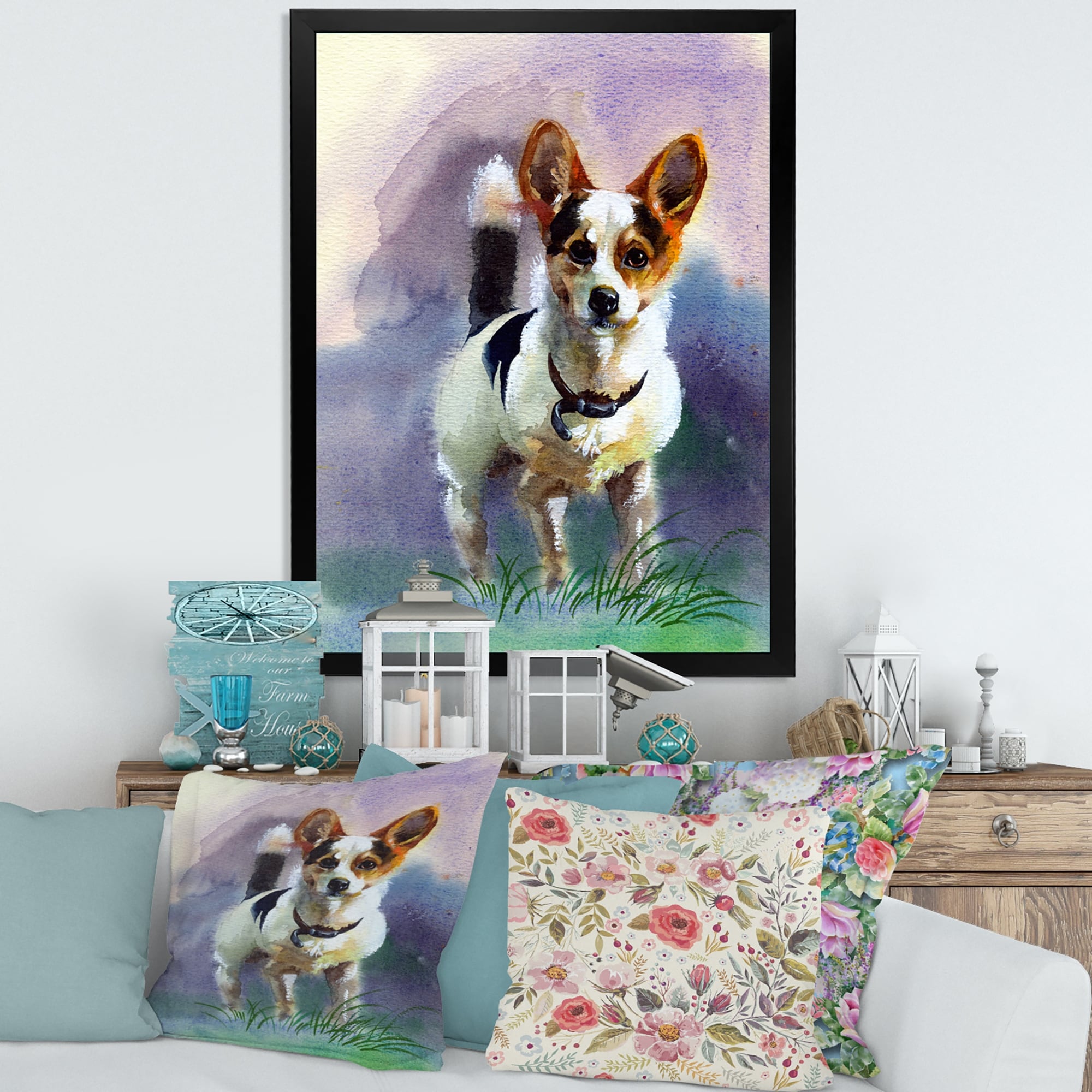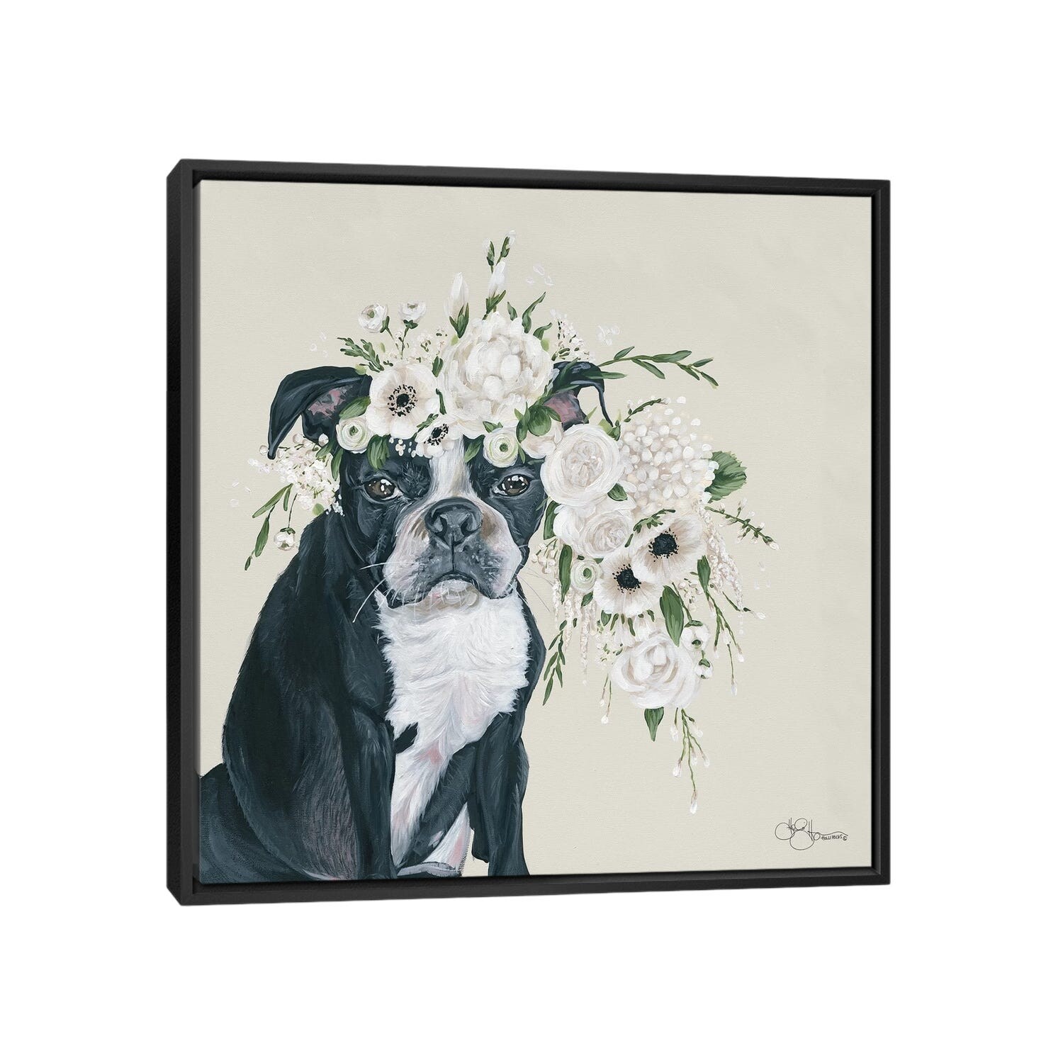 iCanvas "Dog and Flower" by Hollihocks Art Framed Canvas Print