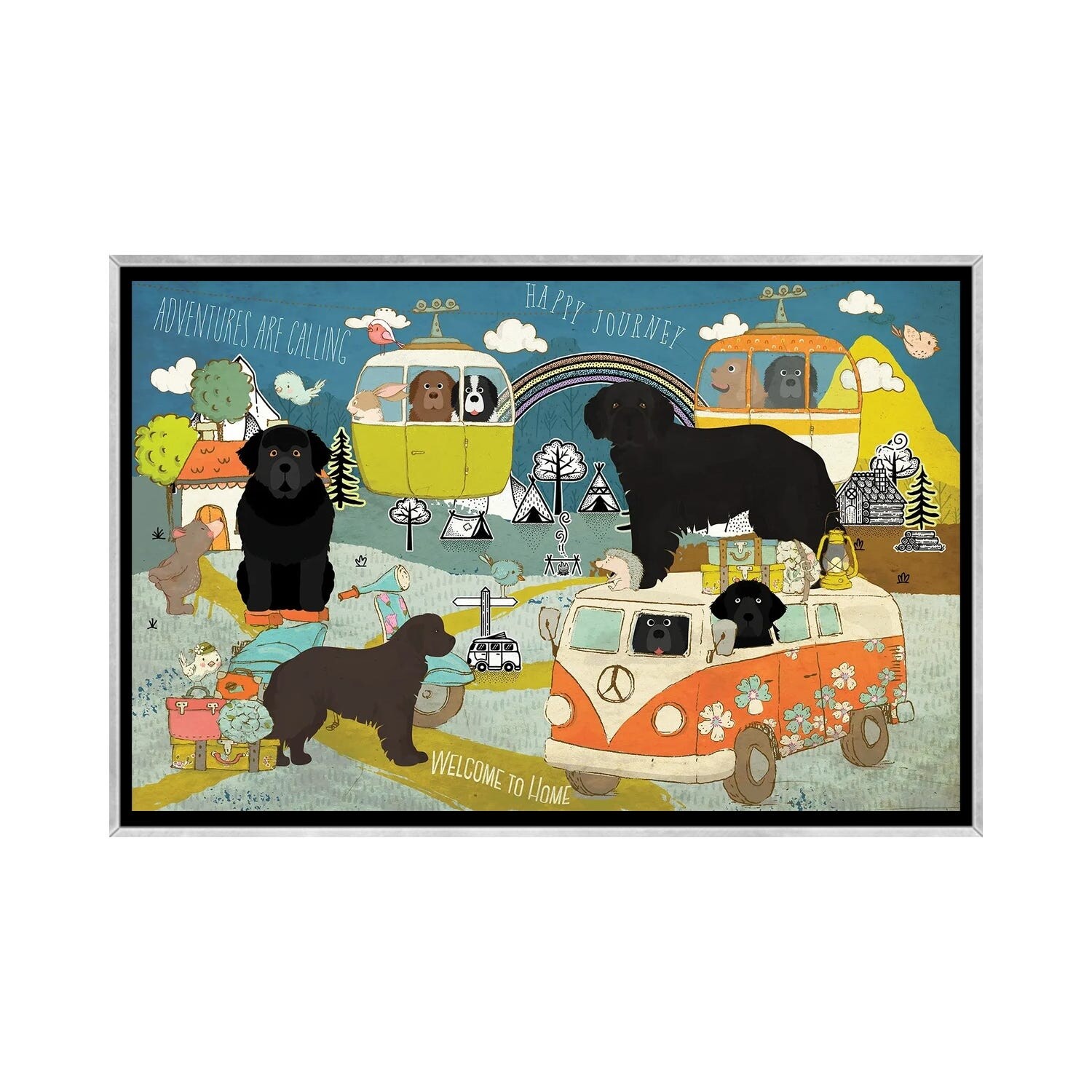 iCanvas "Newfoundland Dog Happy Journey" by Nobility Dogs Framed