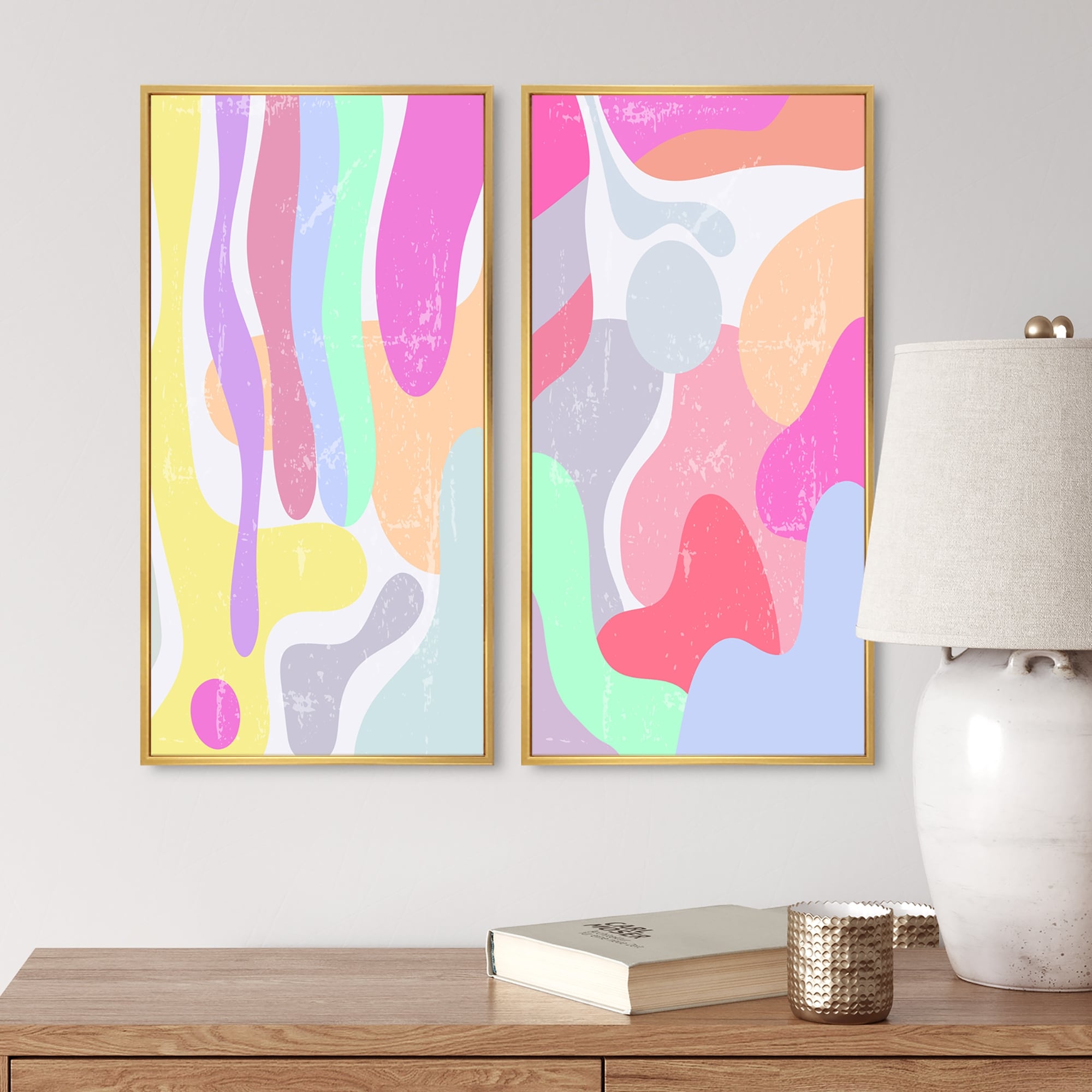 Designart "70S Vintage Minimalistic Organic Doodles I" Abstract Framed Art Set of 2 Pieces