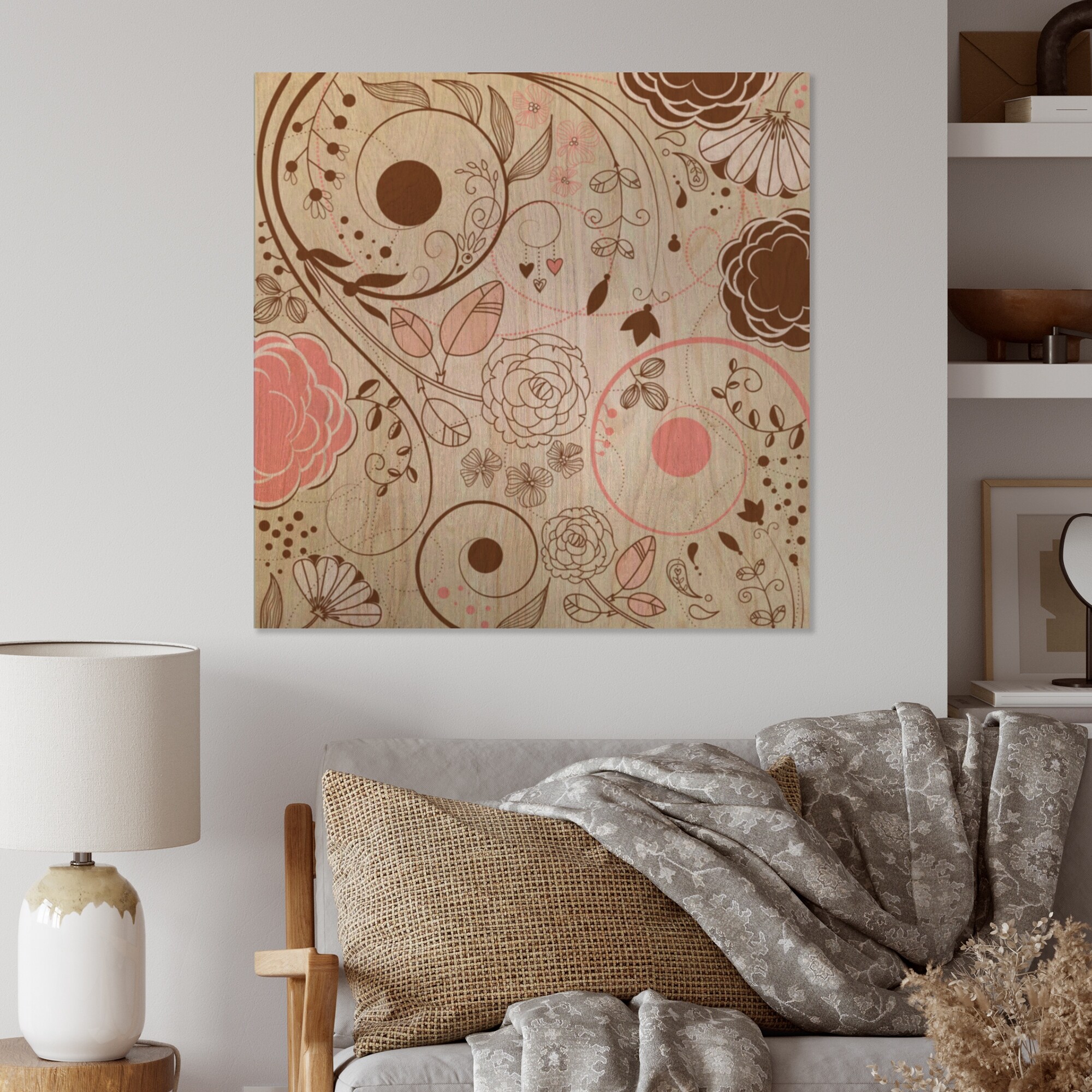Designart 'Retro Doodles Flowers III' Traditional Wood Wall Art Panels - Natural Pine Wood