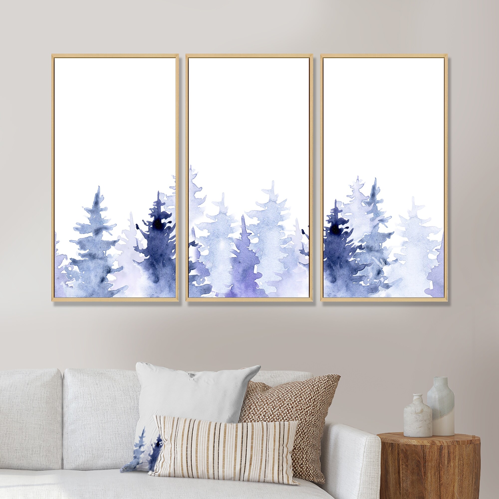 Designart "Blue Drawing of Forest" Tropical Framed Wall Art Set of 3 - 4 Colors of Frames