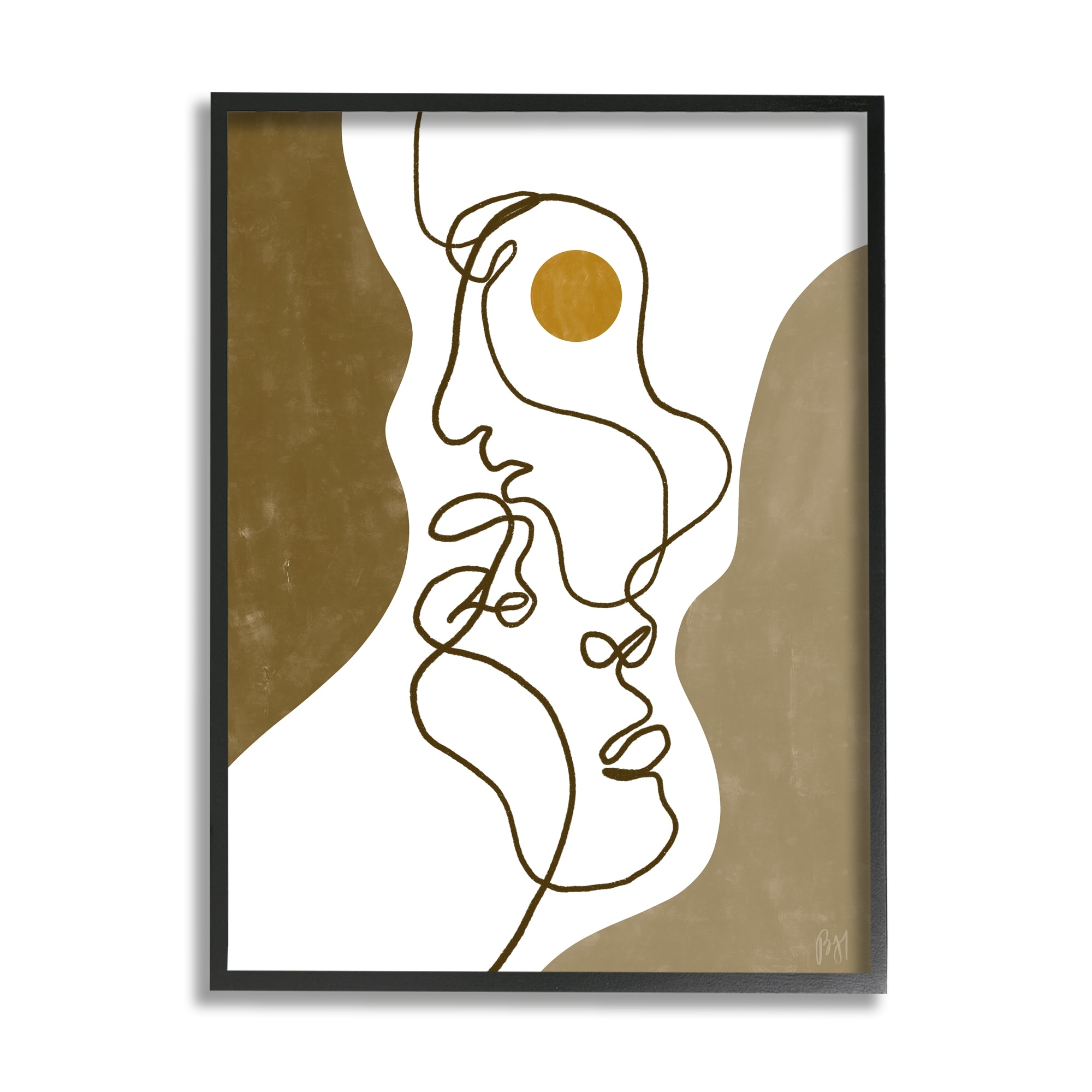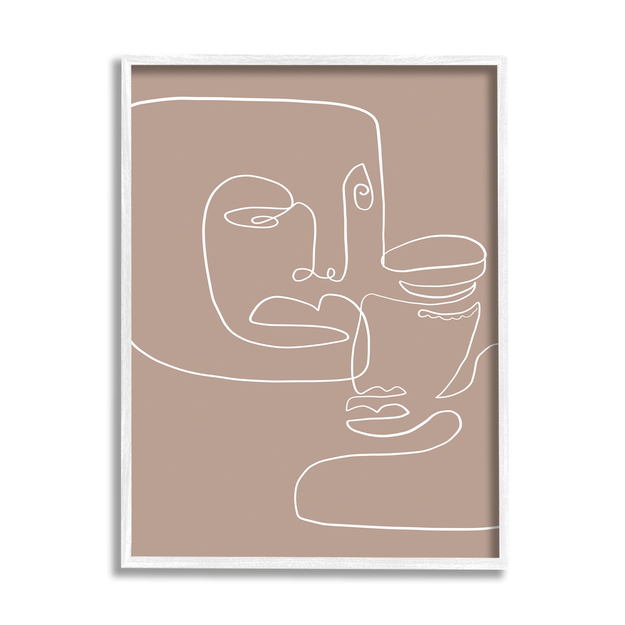Stupell Industries Two Faces Single Line Drawing Brown Beige Abstract Framed Wall Art - White