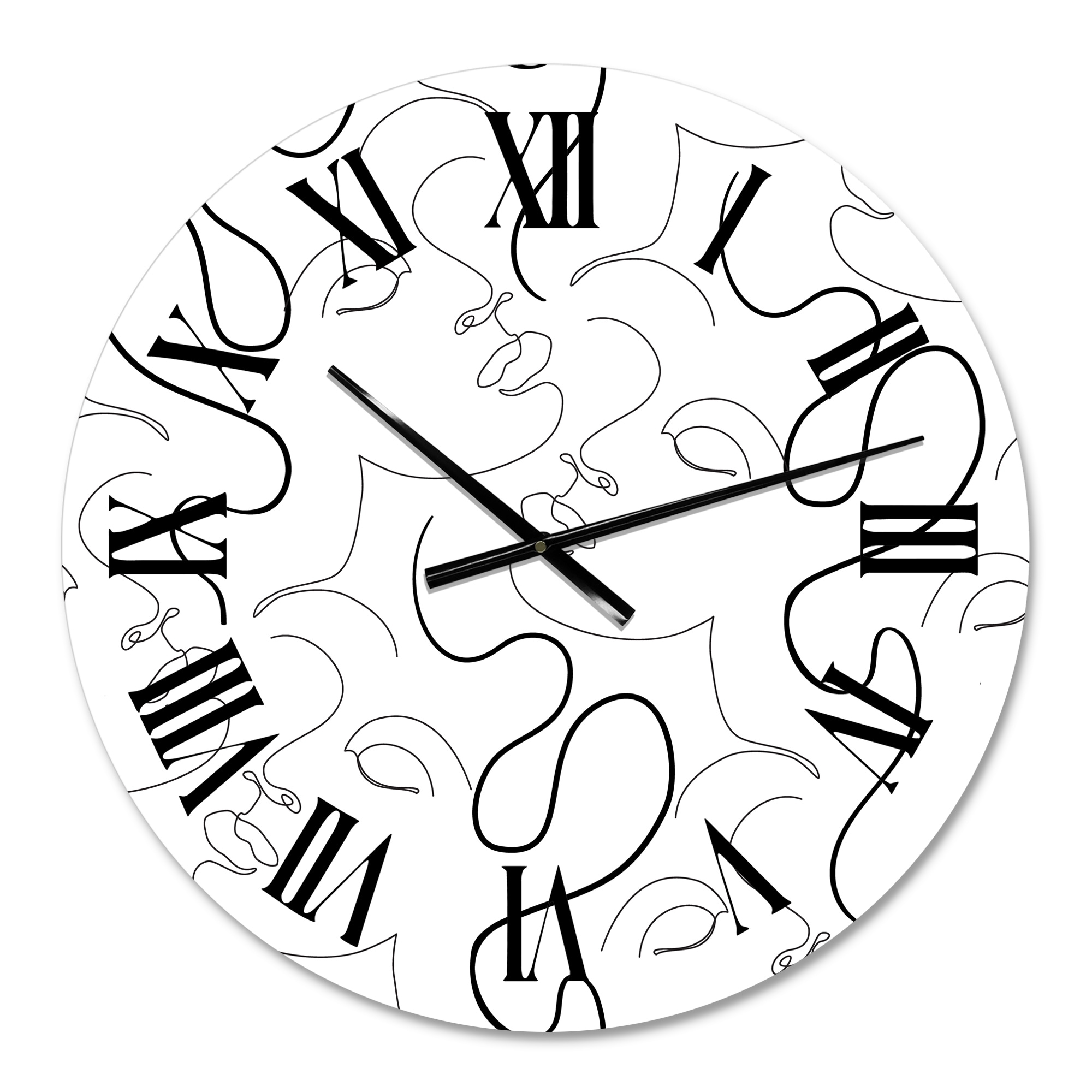 Designart 'Monochrome One Line Drawing Portraits' Modern wall clock