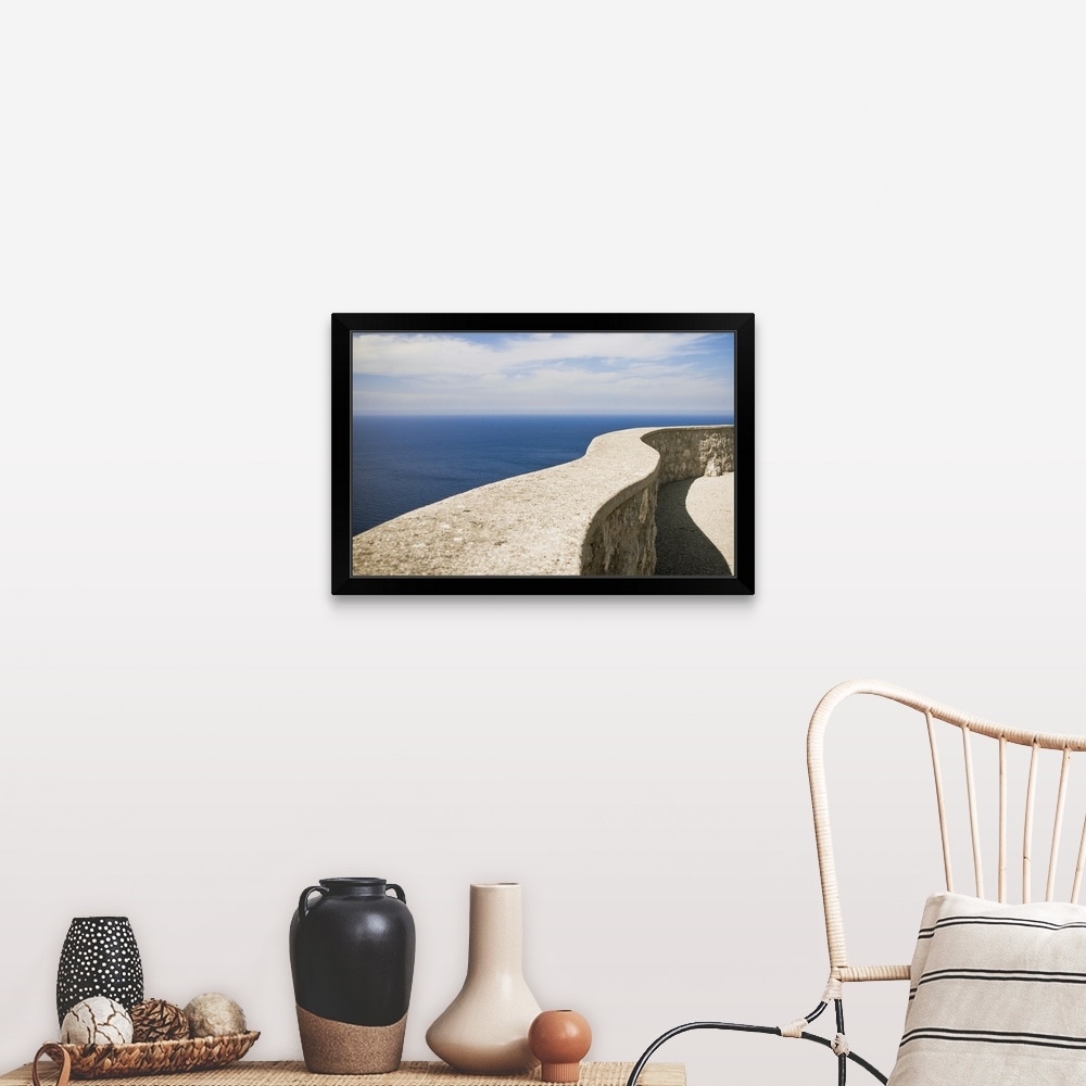 "Stone balustrade and its shadow drawing a soft curve" Black Framed Print
