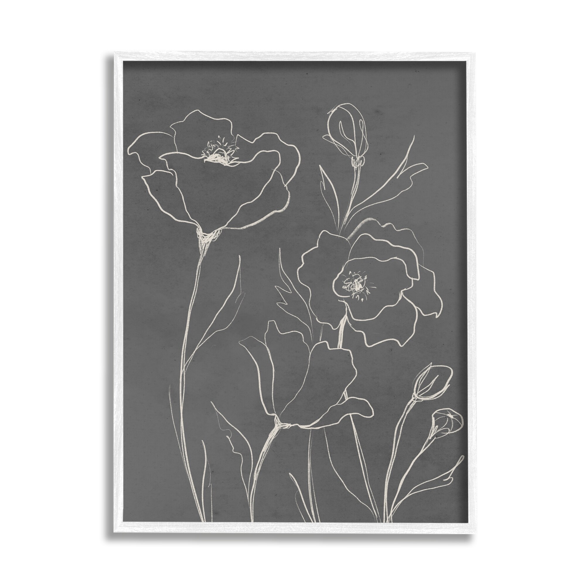 Stupell Industries Blossoming Flower Petals Botanical Line Doodle Drawing Framed Wall Art, Design by Elizabeth Medley - Grey