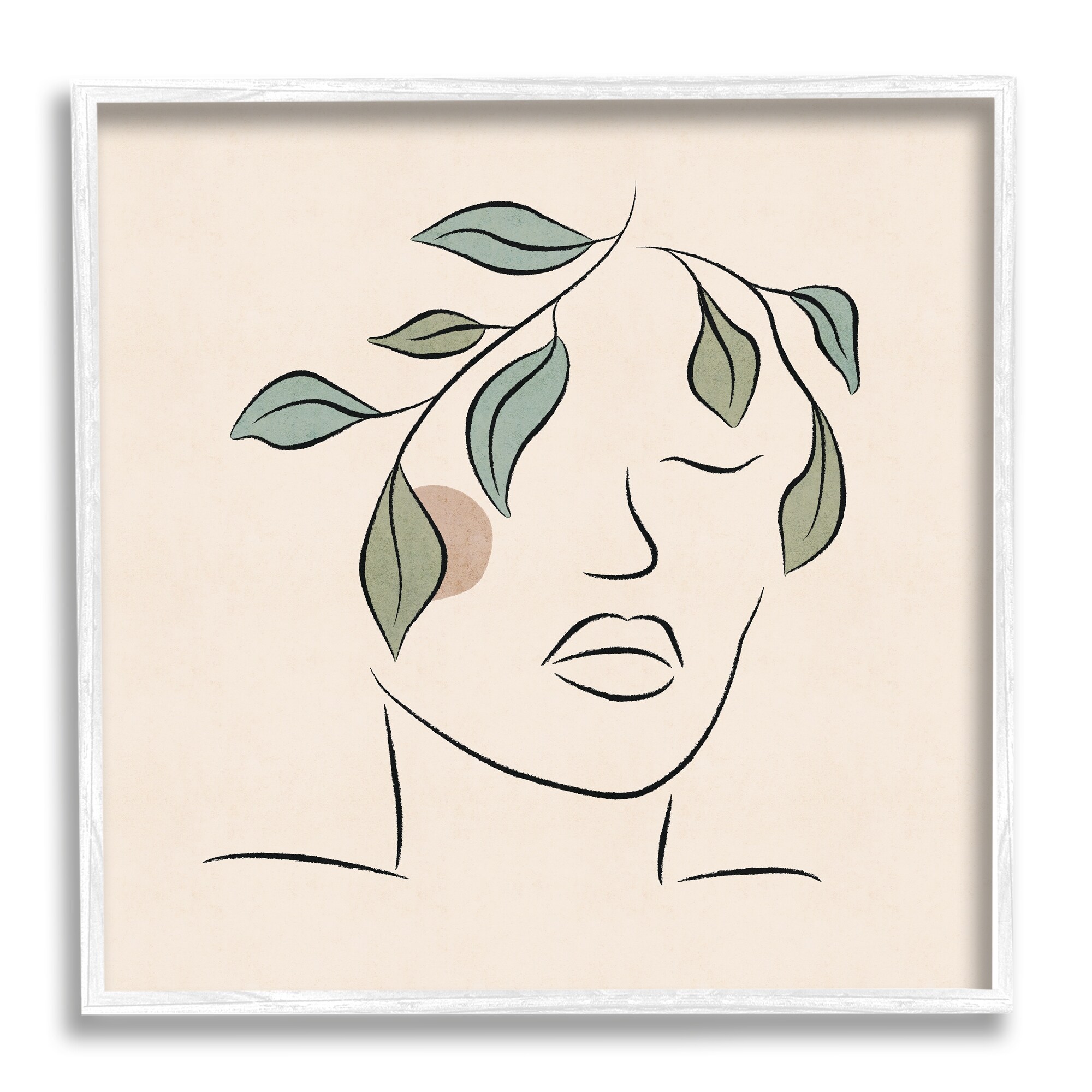 Stupell Industries Blushing Woman Face Botanical Outline Doodle Drawing Framed Wall Art, Design by JJ Design House LLC - Beige