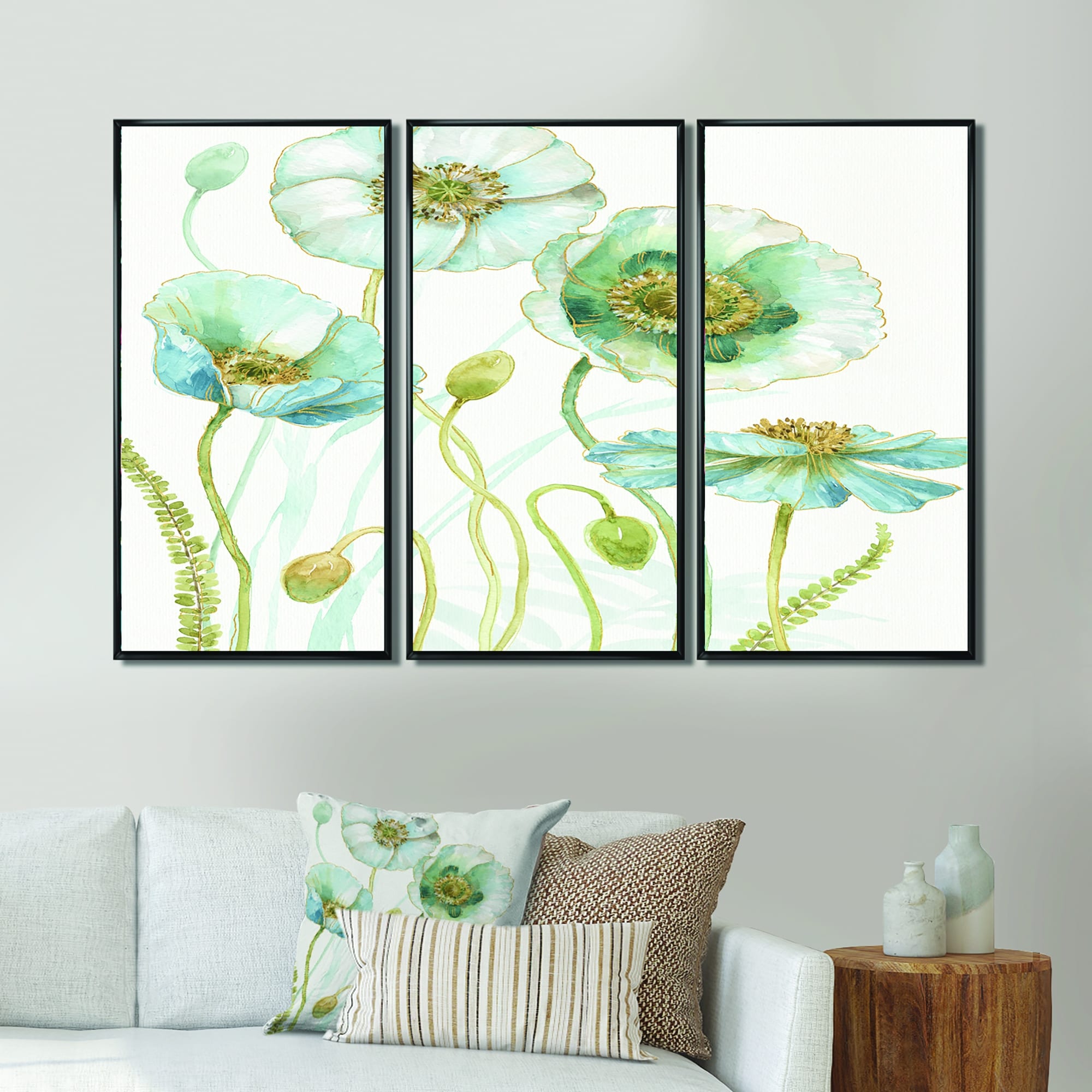 Designart "Blue Cottage Flowers Drawing I" Farmhouse Framed Wall Decor Set of 3 - 4 Colors of Frames