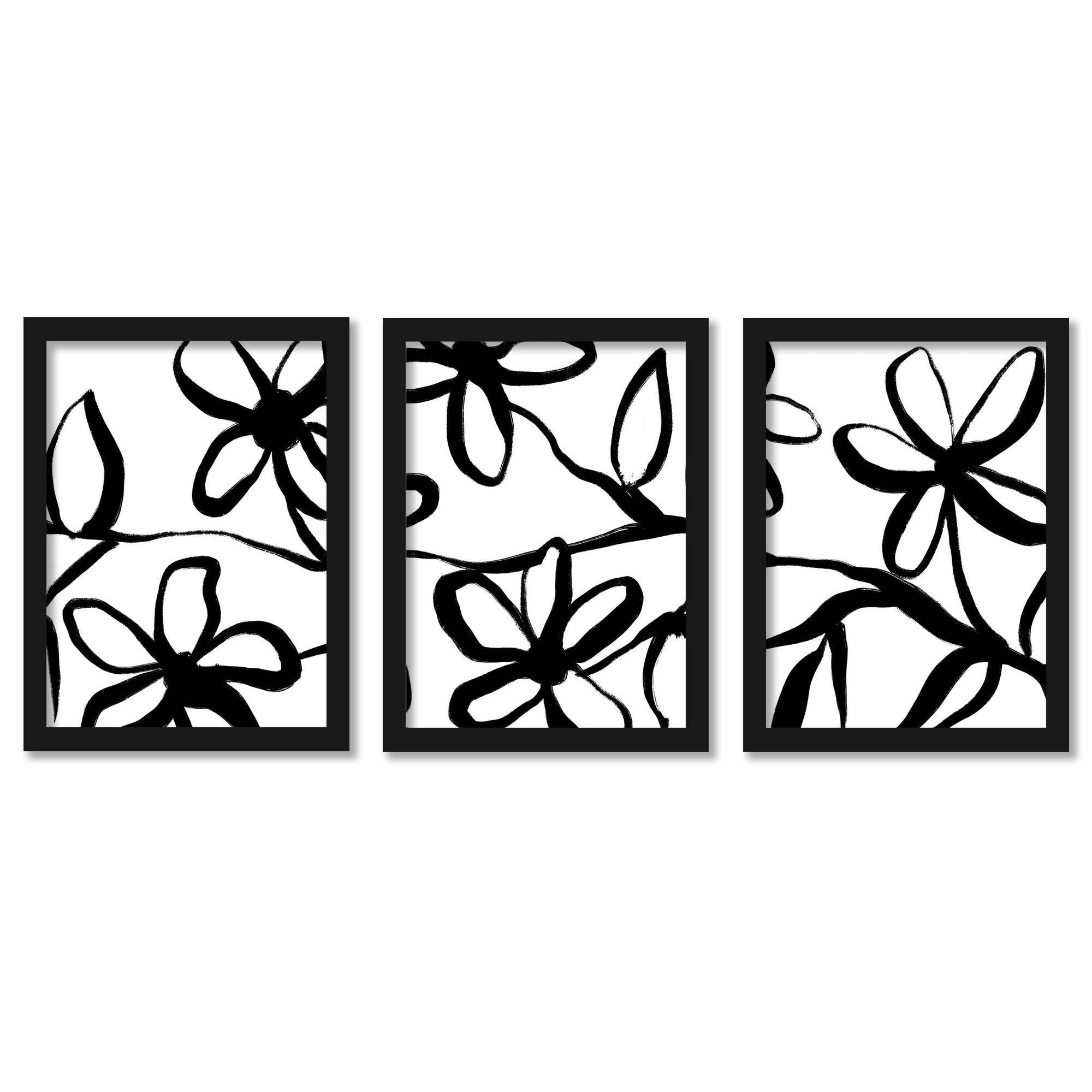 Black And White Floral Drawing Jetty Home Botanical 2 - 3 Piece Framed Gallery Art Set
