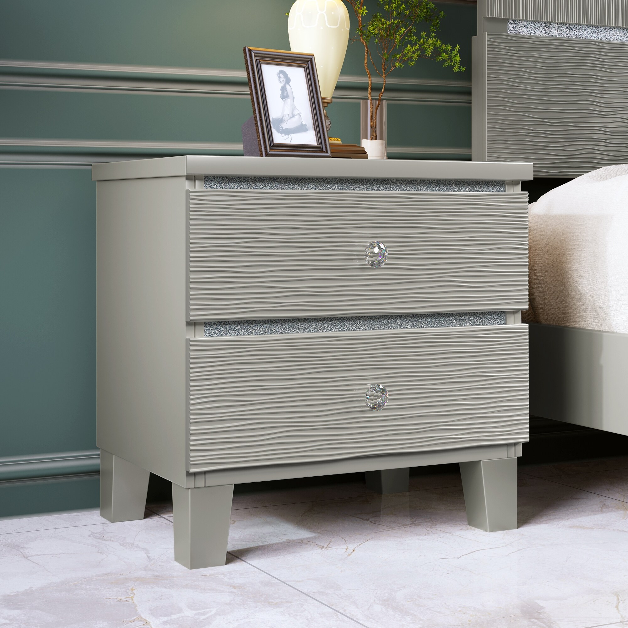 JASIWAY Nightstand with Drawers and Metal Slides Crystal Handle