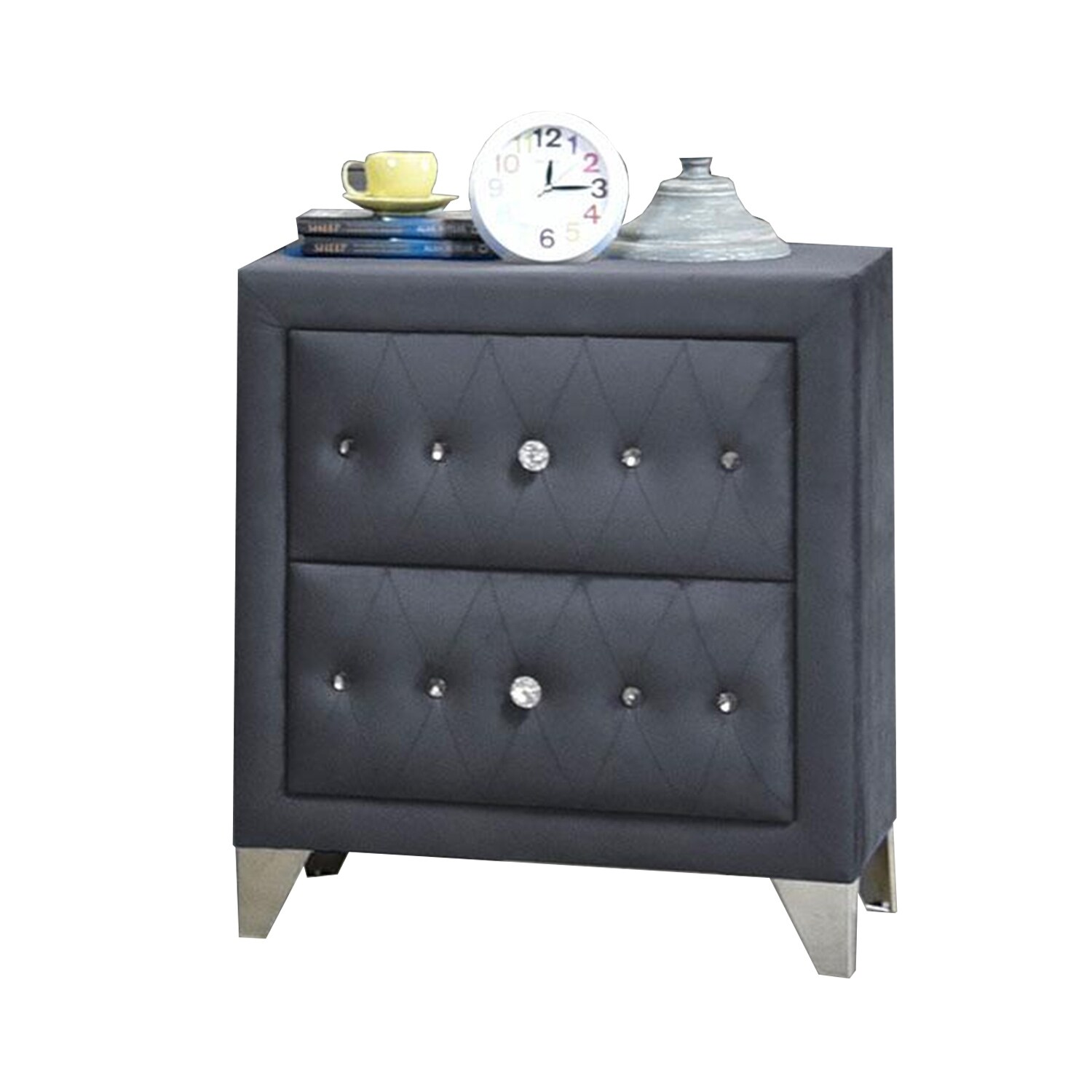 Modern Gray 2 Drawer Nightstand