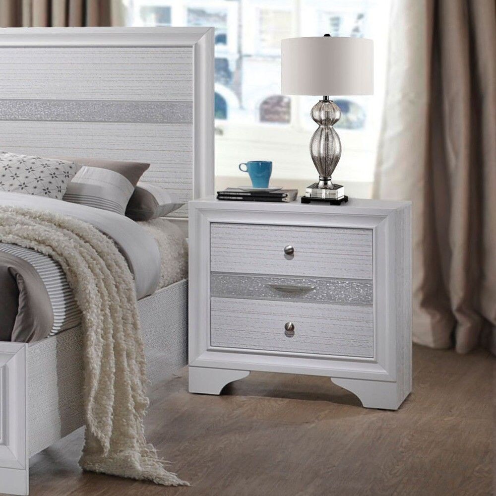 Bedroom Nightstand with 2 Drawers in White Finish
