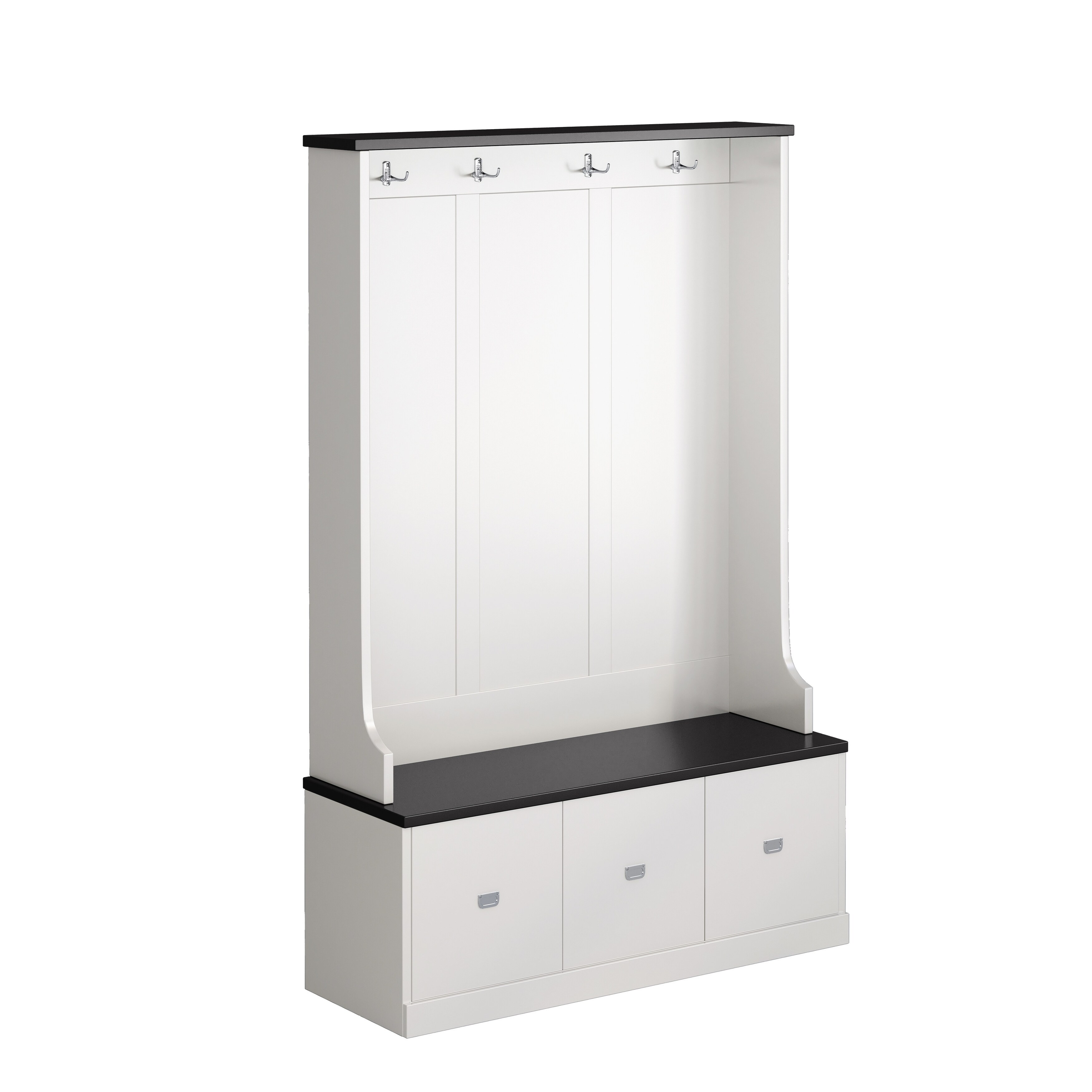 Hall Tree with 4 Hooks and 3 Large Drawers