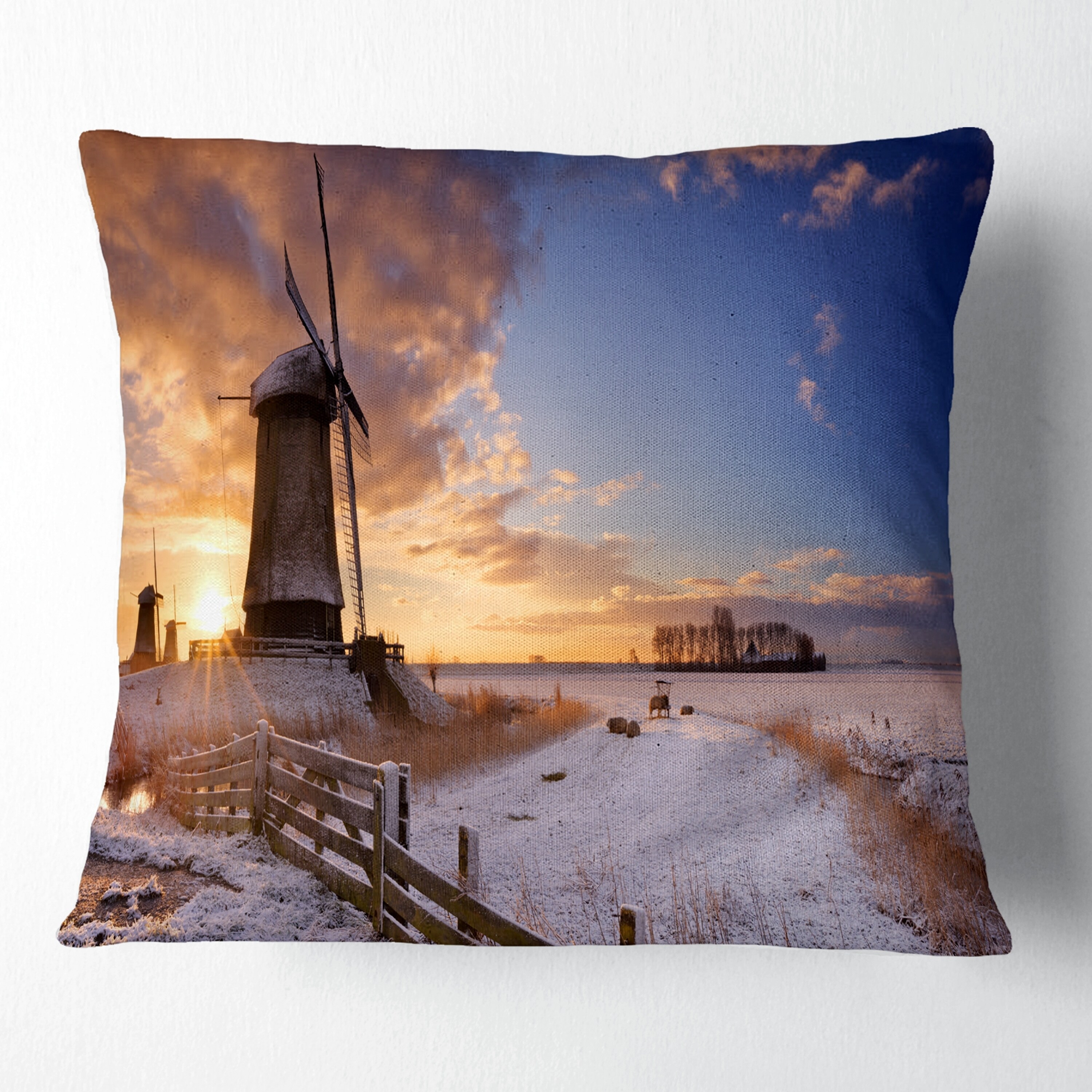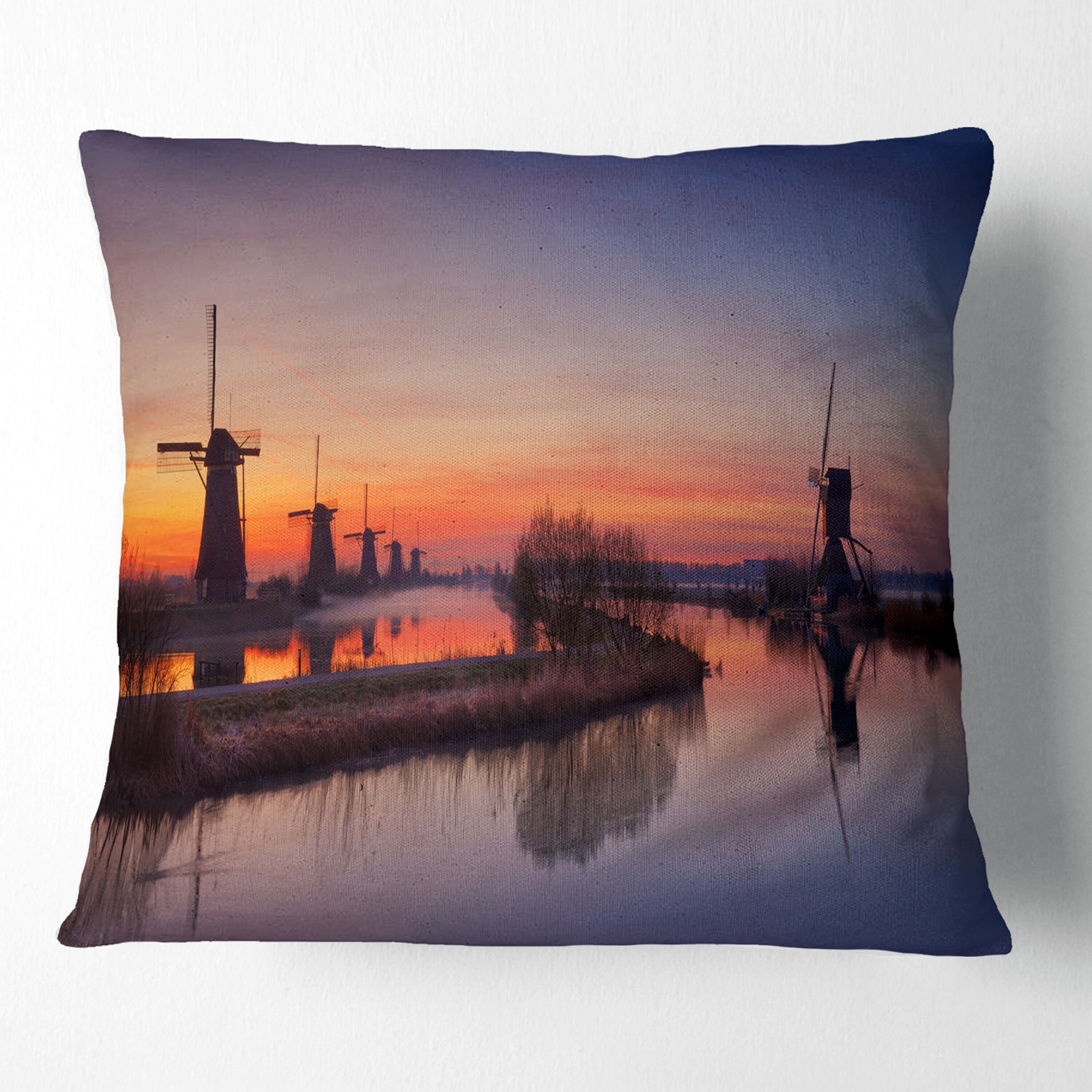 Designart 'Dutch Windmills at Sunrise' Abstract Throw Pillow
