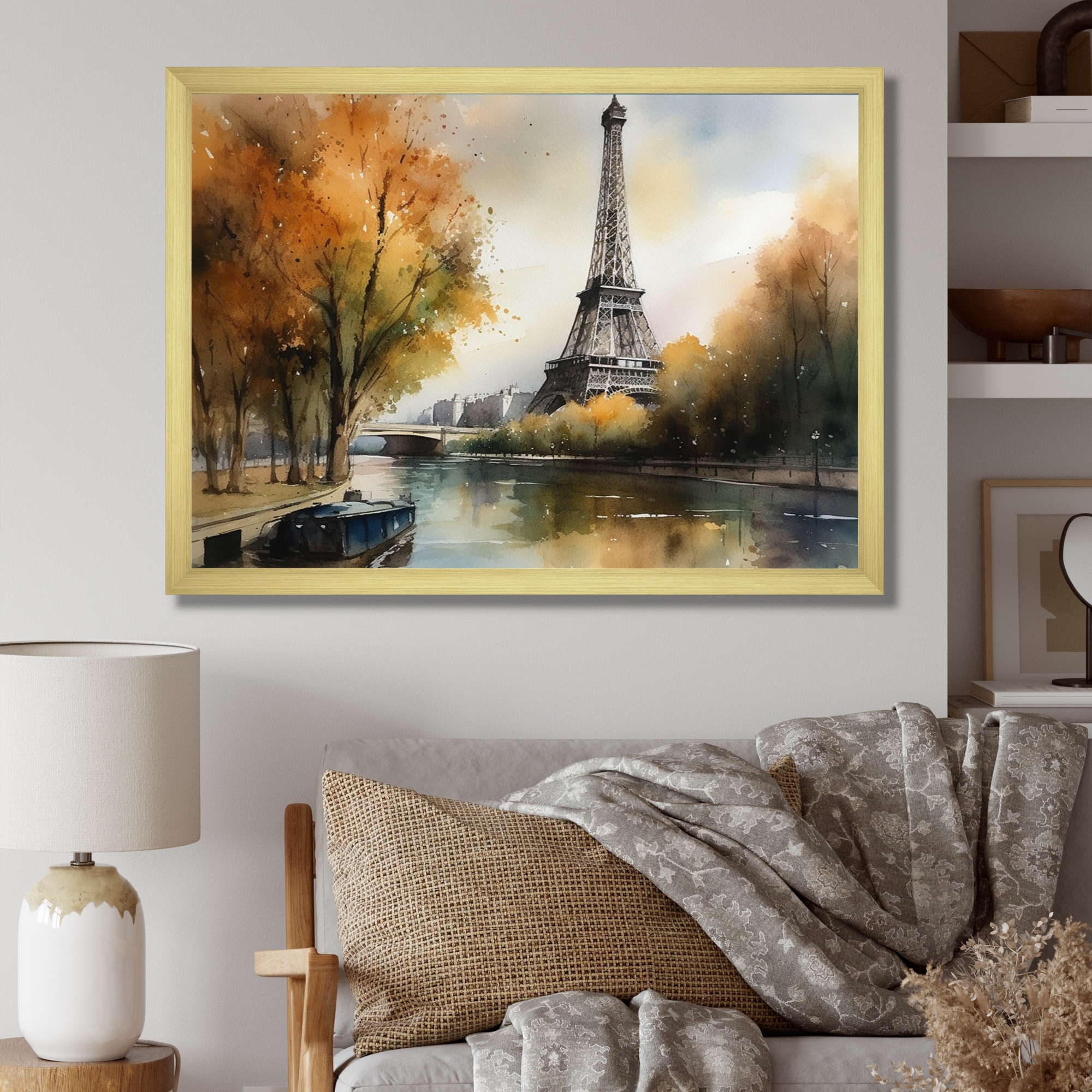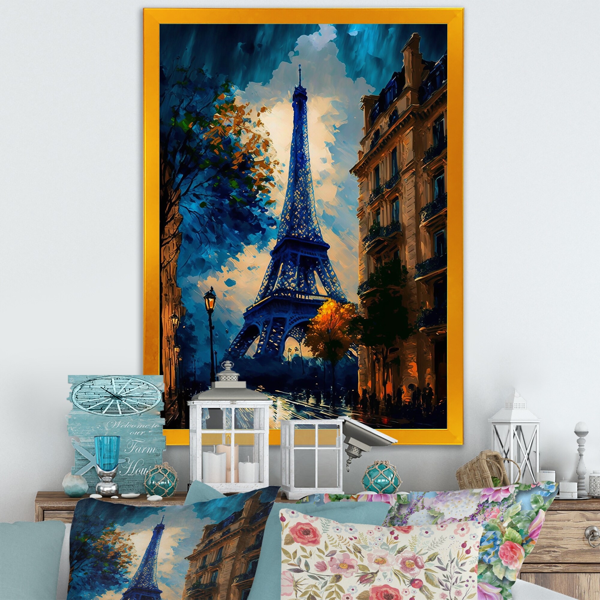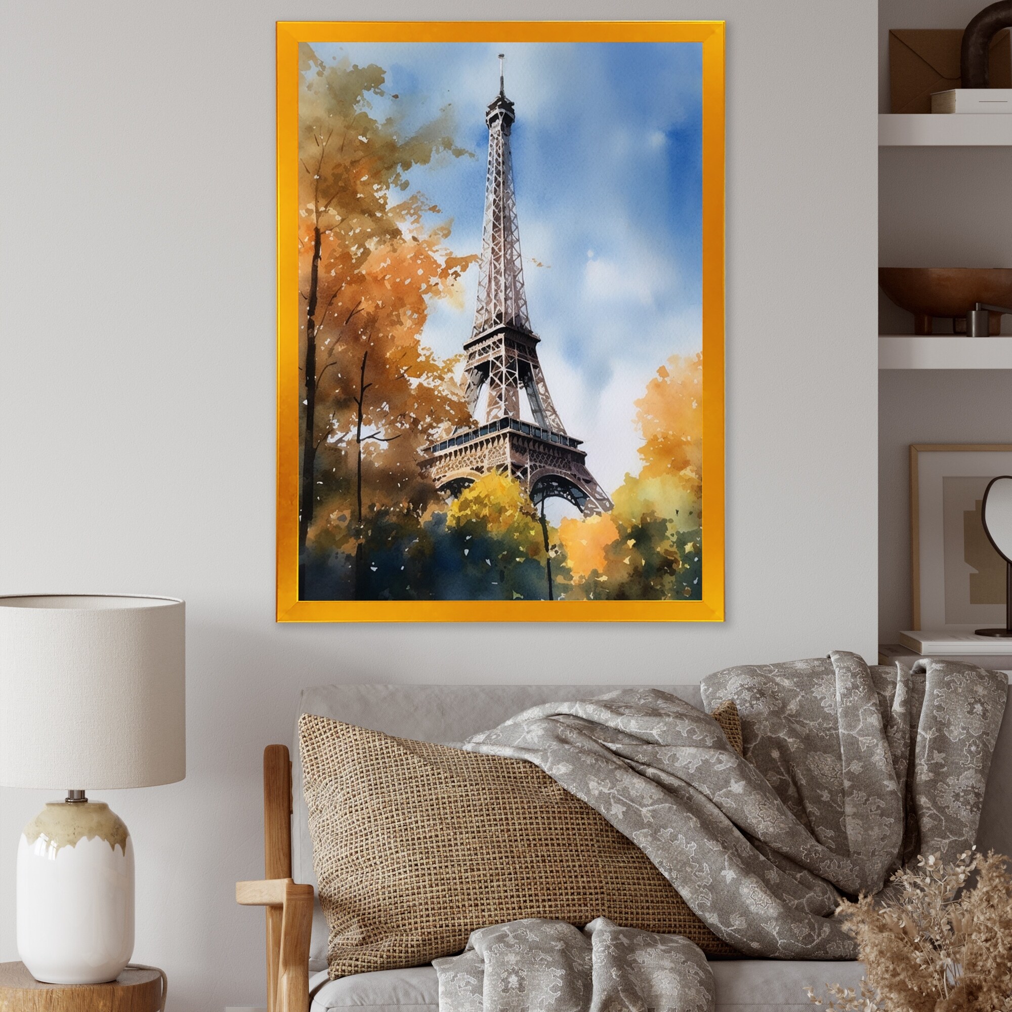Designart "Blue Eiffel Tower in the Autumn " French Landscape Framed Art Print