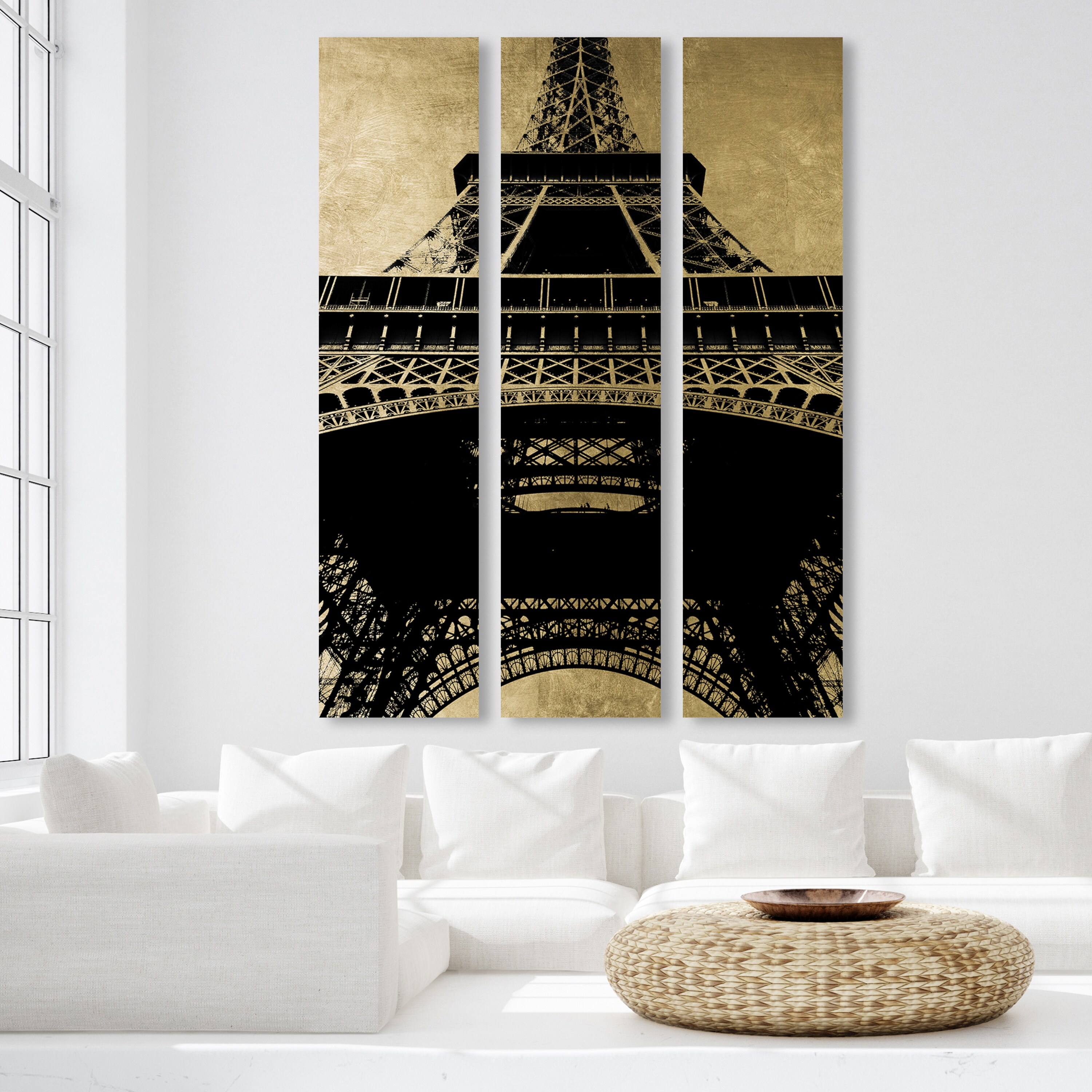 Oliver Gal 'Eiffel Tower Gold Sky Triptych' Cities and Skylines Wall Art Canvas Print - Gold, Gray