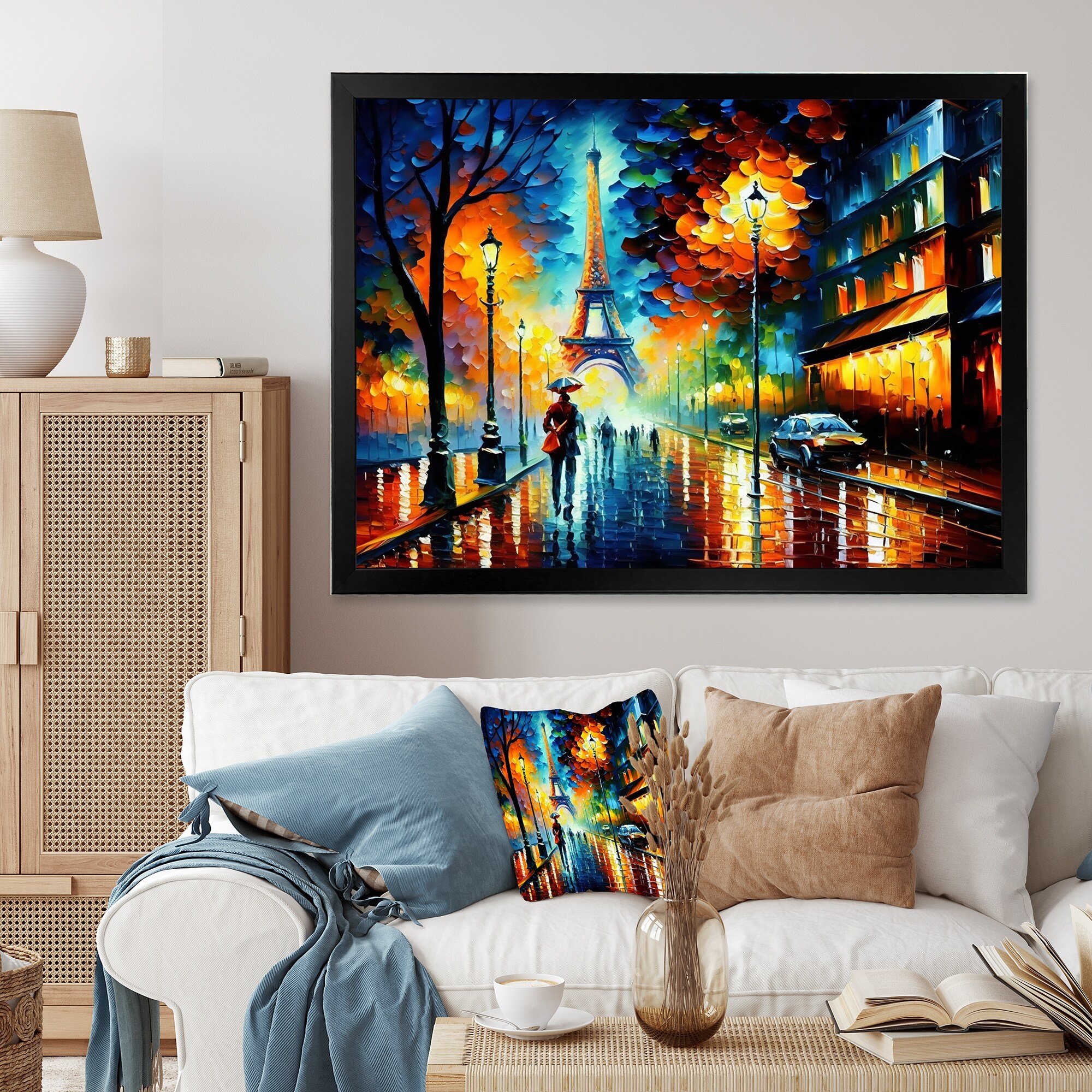 Designart "Colorful City Paris Eiffel" Cityscapes Framed Canvas Art Print