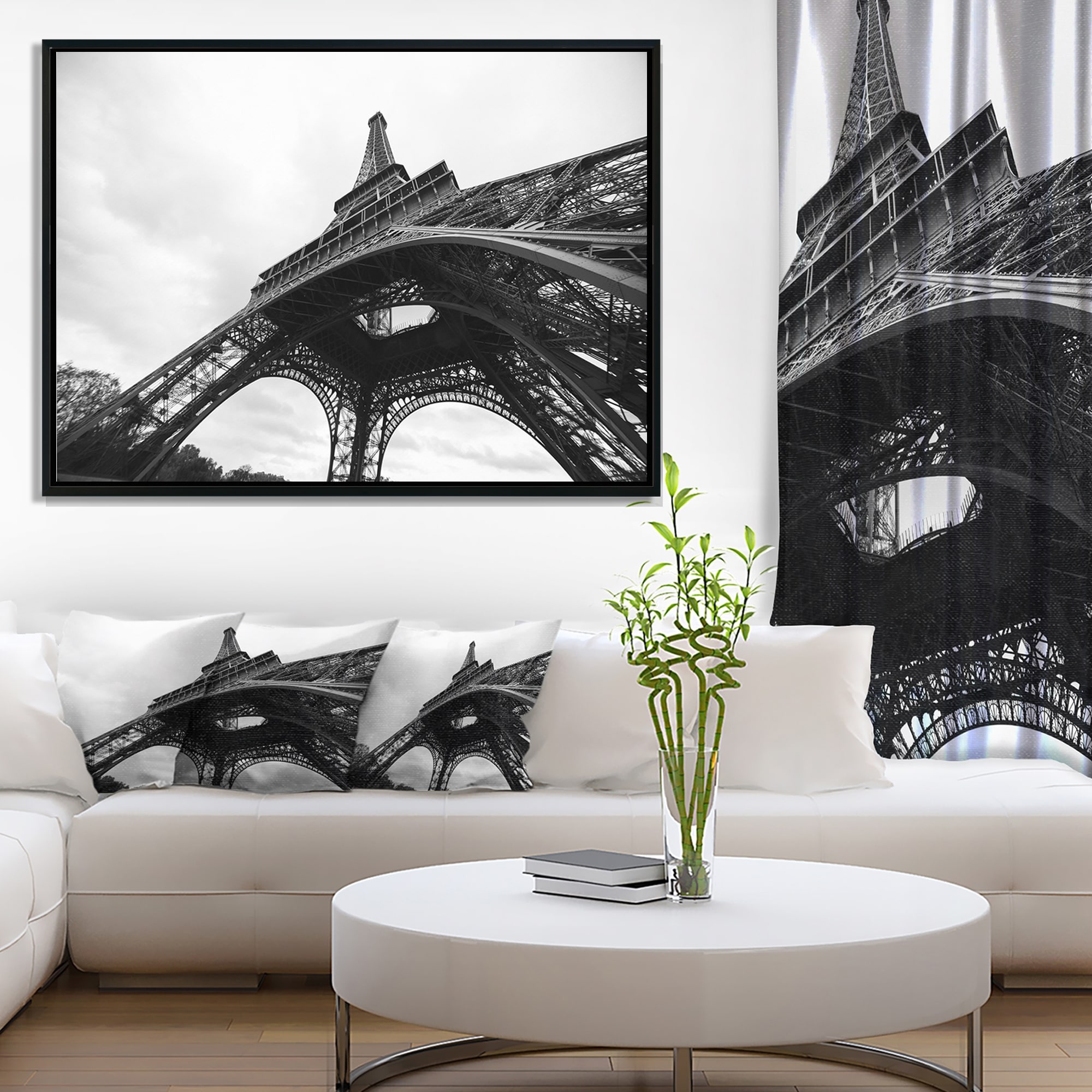 Designart "Paris Paris Eiffel Towerin Black and White Side View" Cityscape Framed Canvas Print