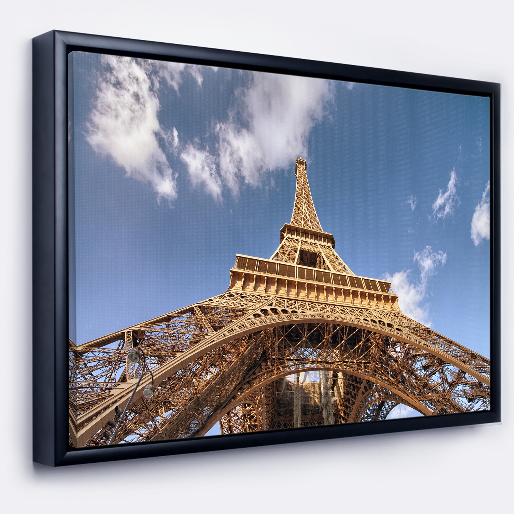 Designart "Beautiful View of Paris Paris Eiffel Towerunder Calm Sky" Cityscape Framed Canvas Print