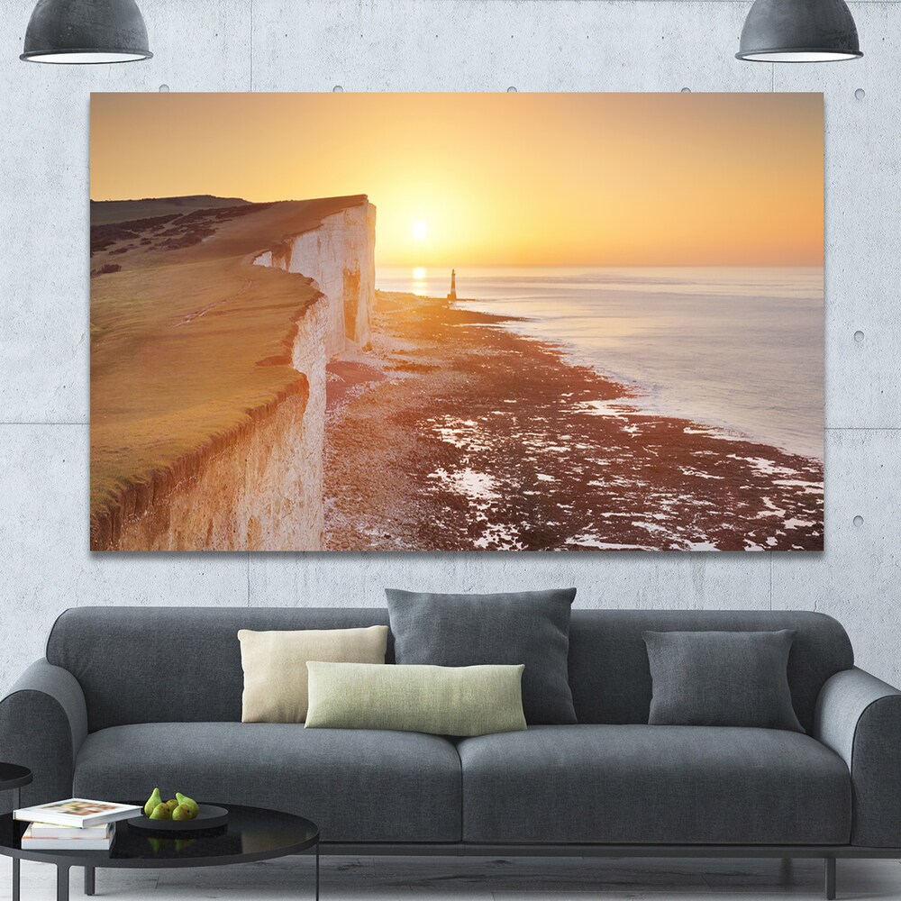 Designart "Sunrise over South Coast of England" Modern Seashore Canvas Wall Art