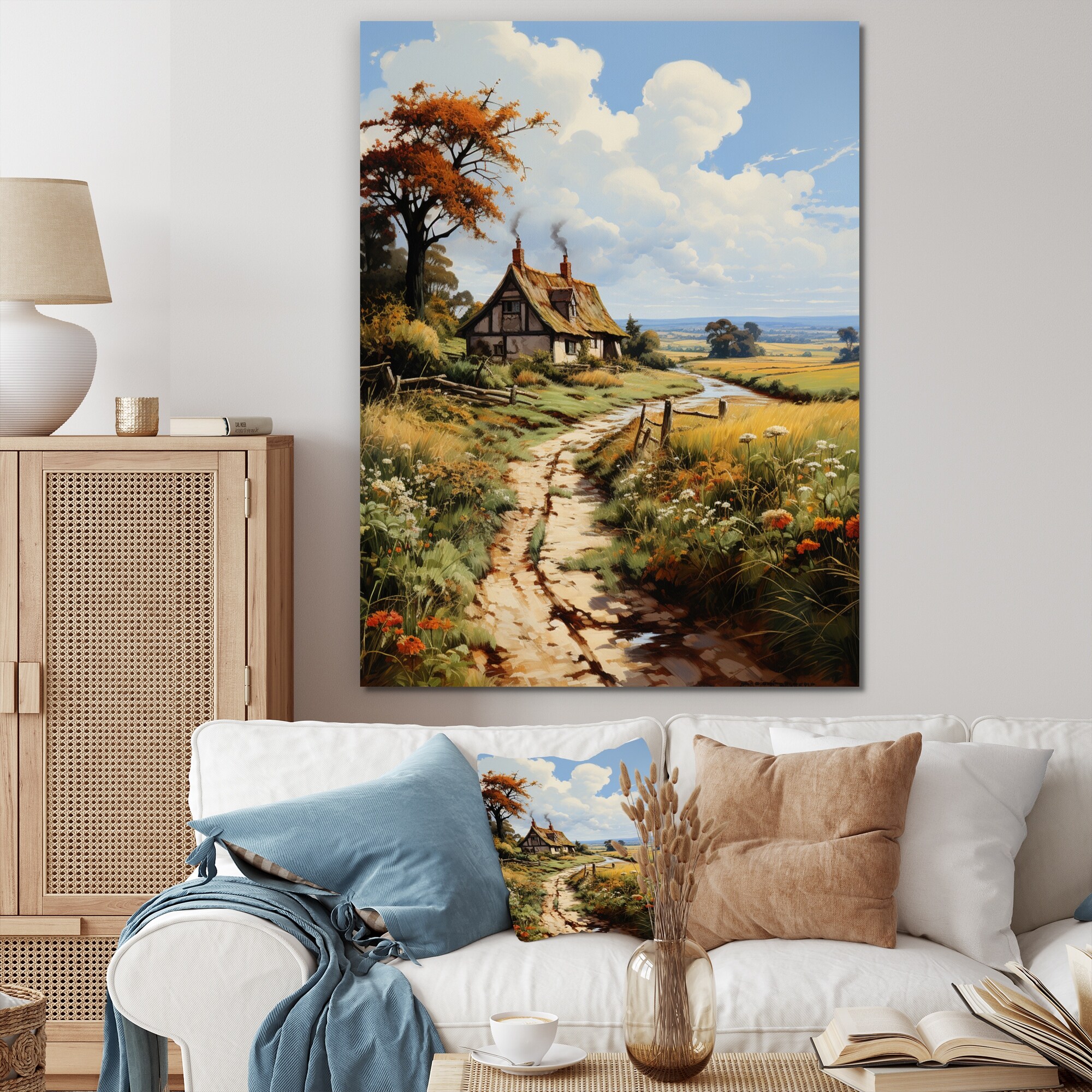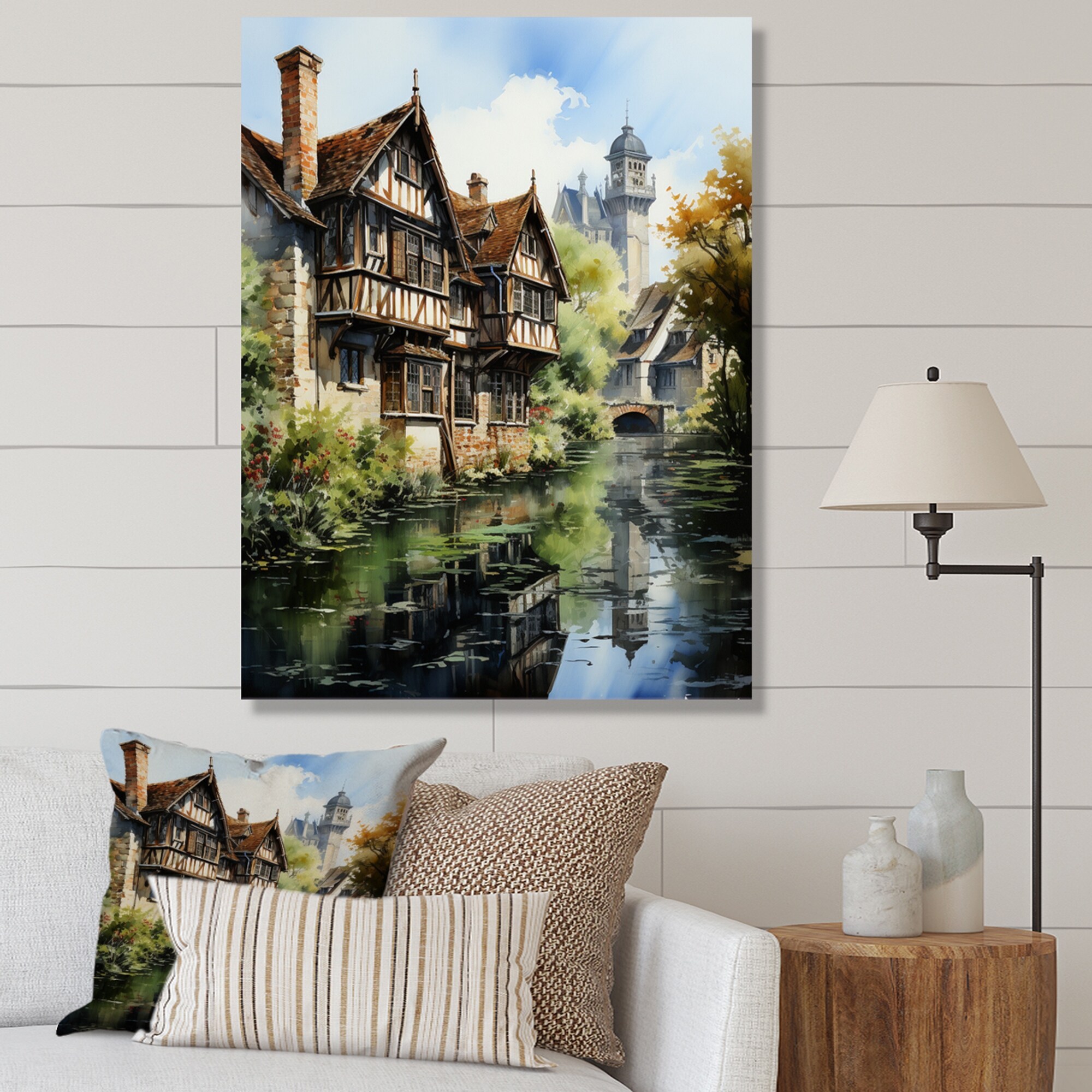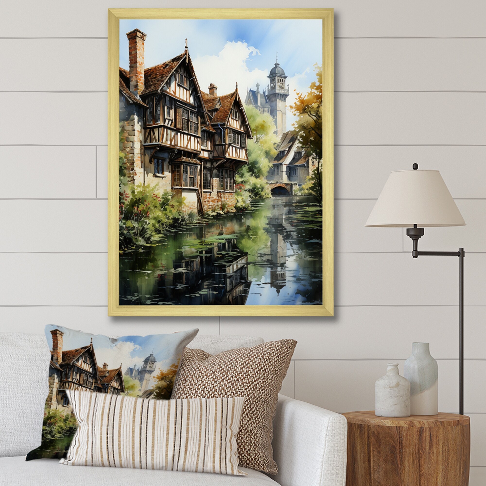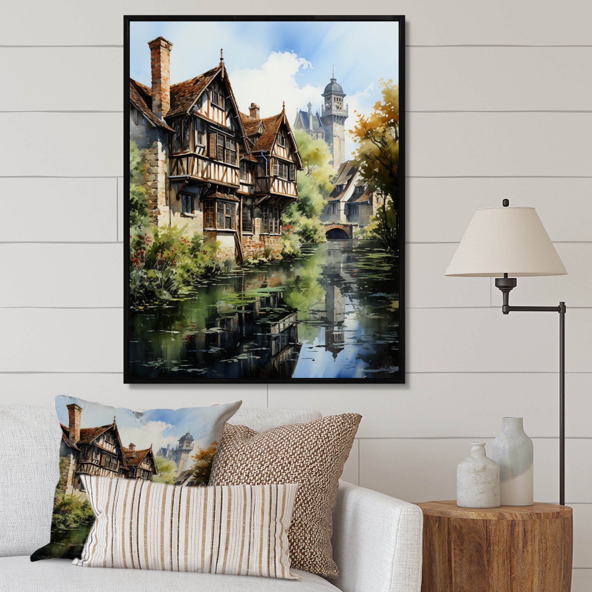 Designart "England Small Town Cottage I" Cottage Landscape Framed Canvas Wall Art